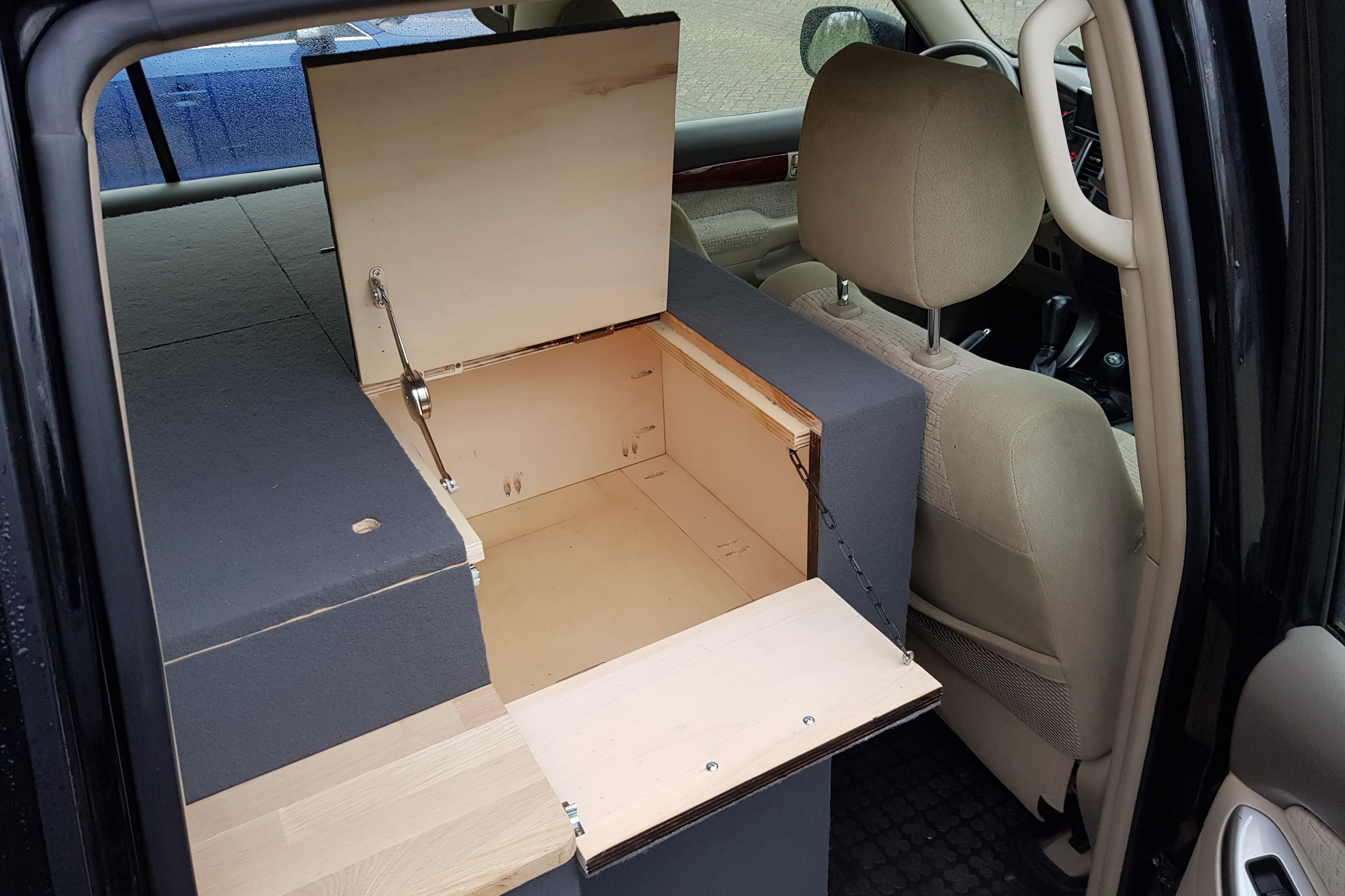 Een voordeel is in ieder geval dat ik tijd heb om te klussen. De afgelopen weken ben ik bezig geweest om de auto verder af te maken. Ik heb het platform verlengd tot aan de voorstoelen, waardoor we straks, als back-up, ook kunnen slapen ín de auto. Onder het platform heb ik vakken gemaakt voor kleding, wasgoed en schoenen, drie dingen die tijdens onze proefvakantie op allerlei plekken in de auto belandden en daardoor steeds weer verplaatst moesten worden. Als de auto in juni uit de stalling komt dan gaan we nog sloten op de laden zetten, een afneembare afdekking (laten) maken voor boven de achterdeur (om te kunnen koken als het regent) en nog wat kleine aanpassingen doen. We overwegen verder nog om een grotere tank en sterkere achterveren te laten monteren en om de achterste ruiten te laten tinten. Ook wachten we nog steeds op onze luifel, maar die zal binnenkort waarschijnlijk wel binnenkomen. En dan is onze kampeerauto wel zo’n beetje klaar. Klaar voor Zuid-Amerika…