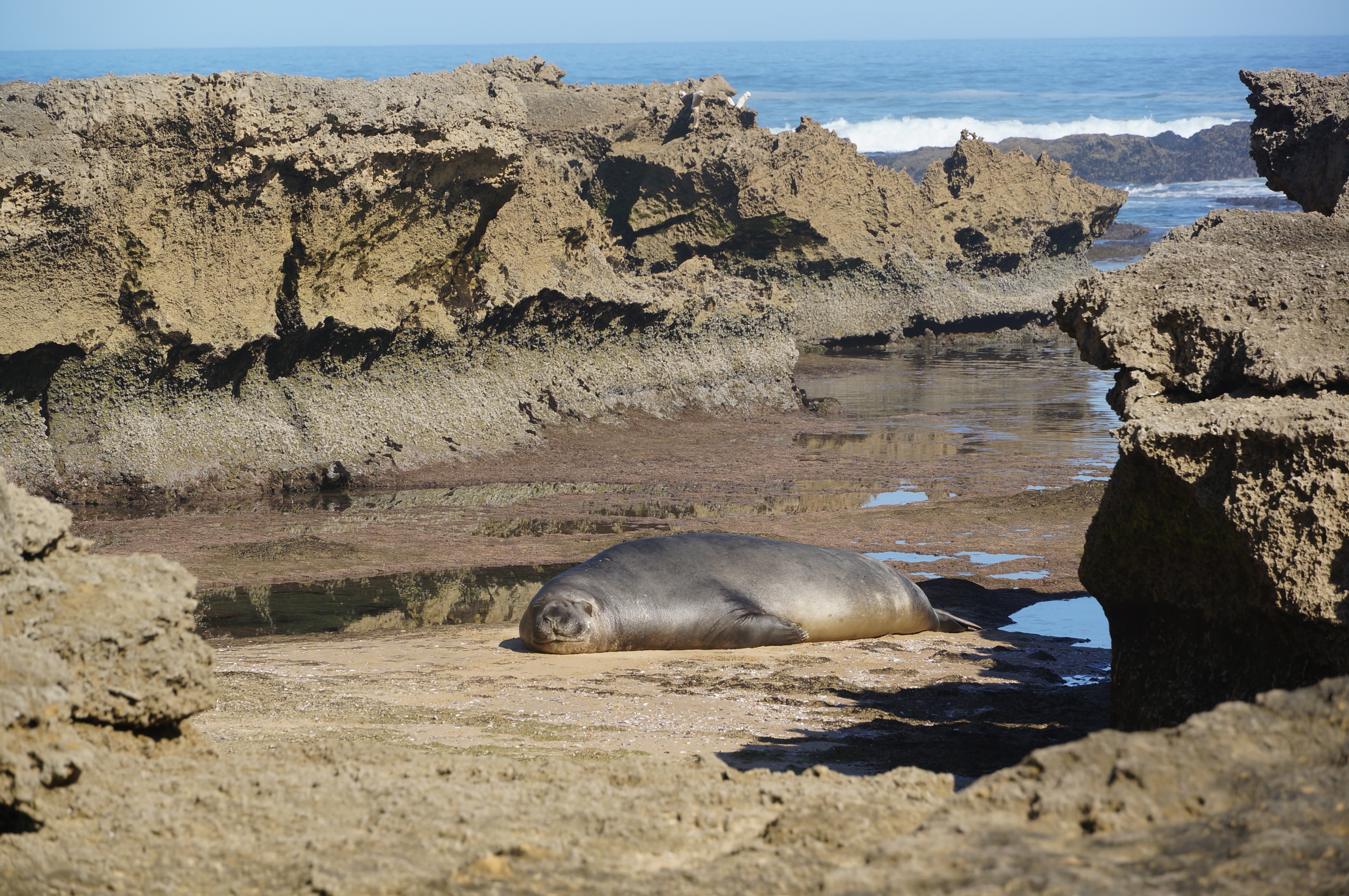 luie zeehond | wandelen over verlaten stranden | Afrikaanse zwarte scholekster (volgens ons nieuwe dierenboekje) | mooi bloemetje (staat niet in het boekje) | omweg over het platteland