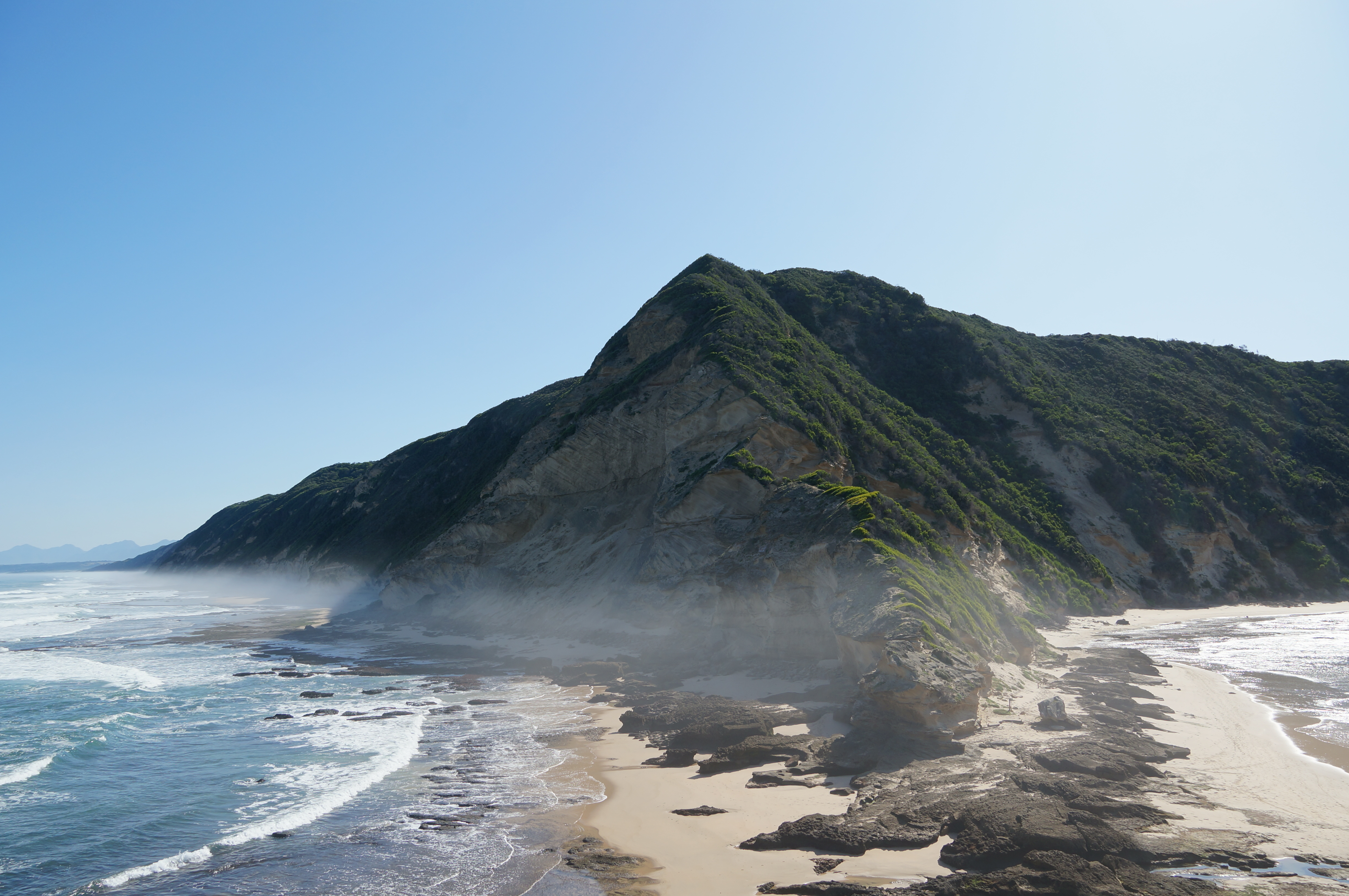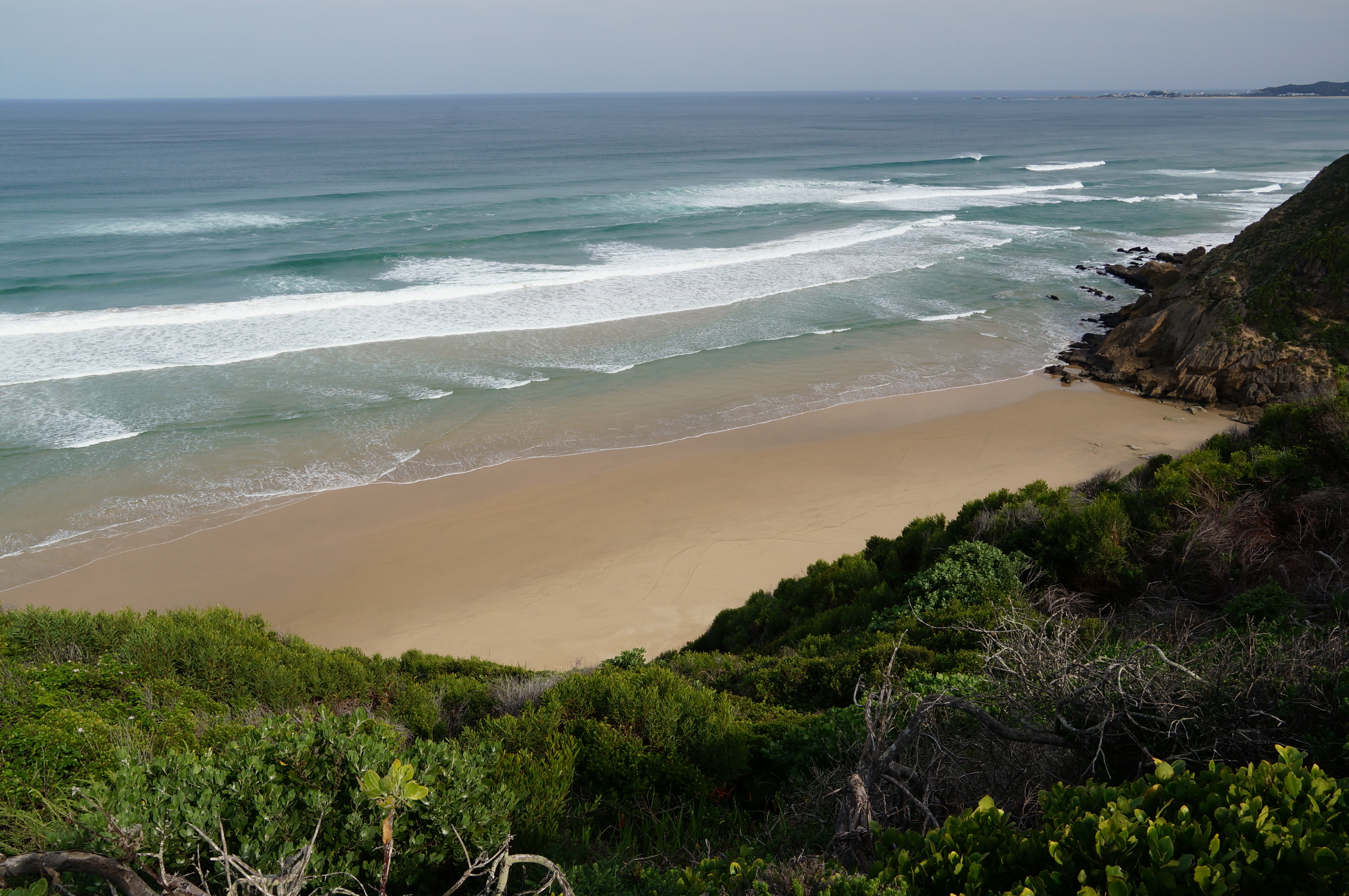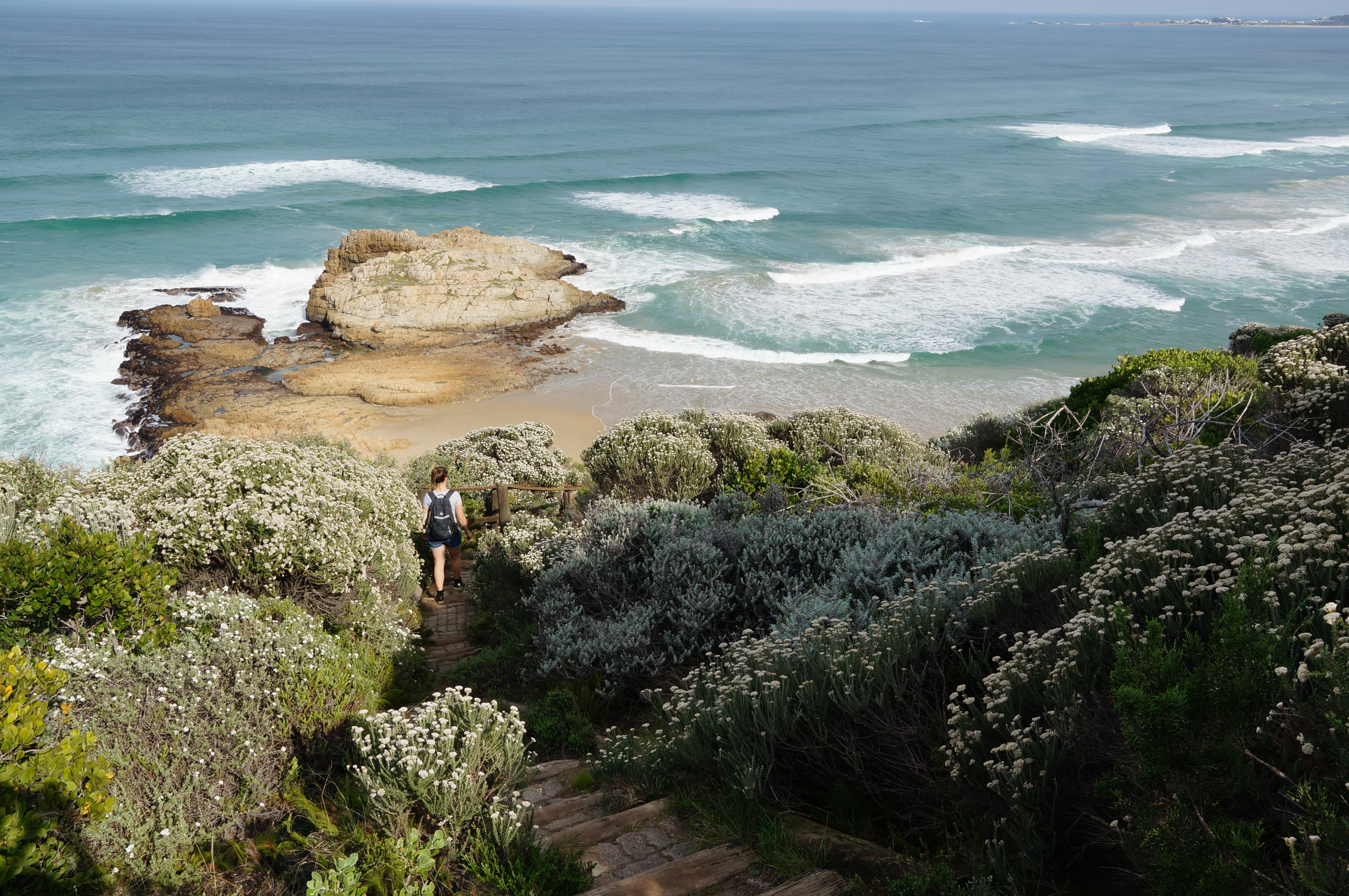 We reizen nog wel een stukje in die richting, naar Knysna. Ook hier maken we een prachtige wandeling over het strand en de kliffen erboven. We lopen helemaal alleen op het verlaten en vlakke strand. Het is hier herfst en dus laagseizoen en dat is om heel veel redenen erg fijn. Zuid-Afrikanen die we tegenkomen zeggen met een vies gezicht (en een donsjas aan) dat de winter eraan komt. Maar dat betekent hier wat anders dan in Nederland en wij antwoorden dan vrolijk dat dit voor ons zomer is. De meelijdende blikken die we soms terugkrijgen nemen we met een lach in ontvangst.