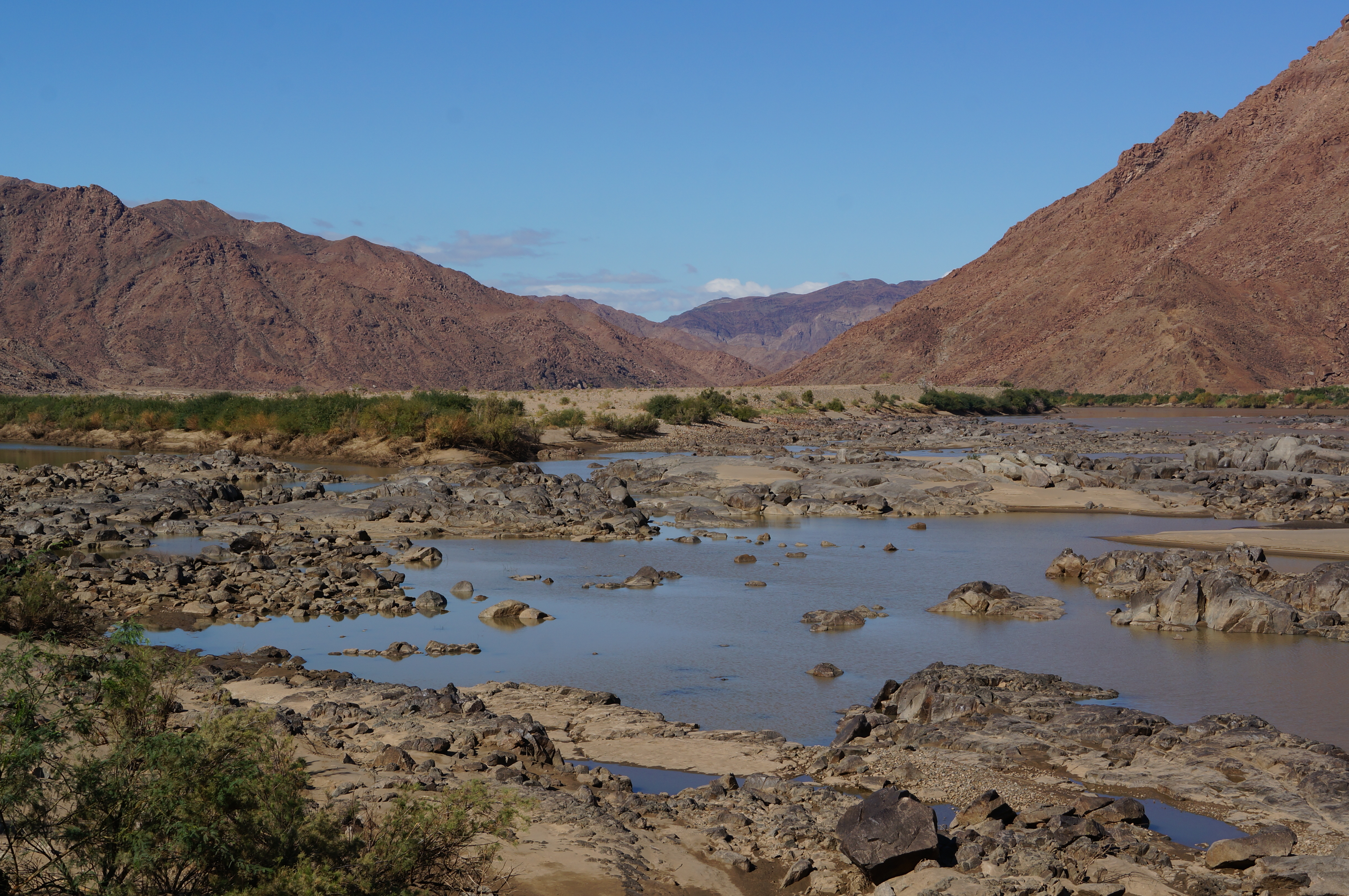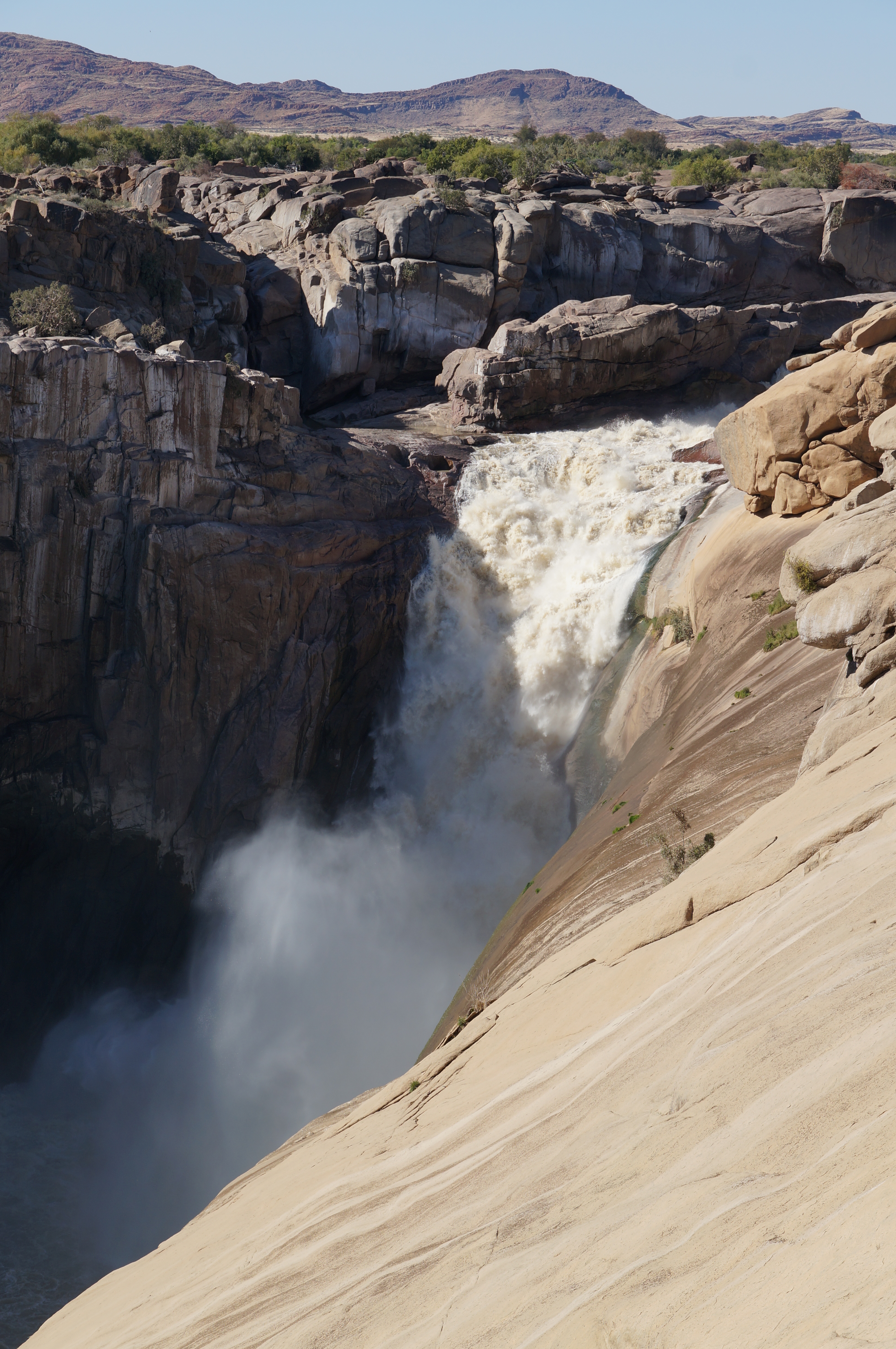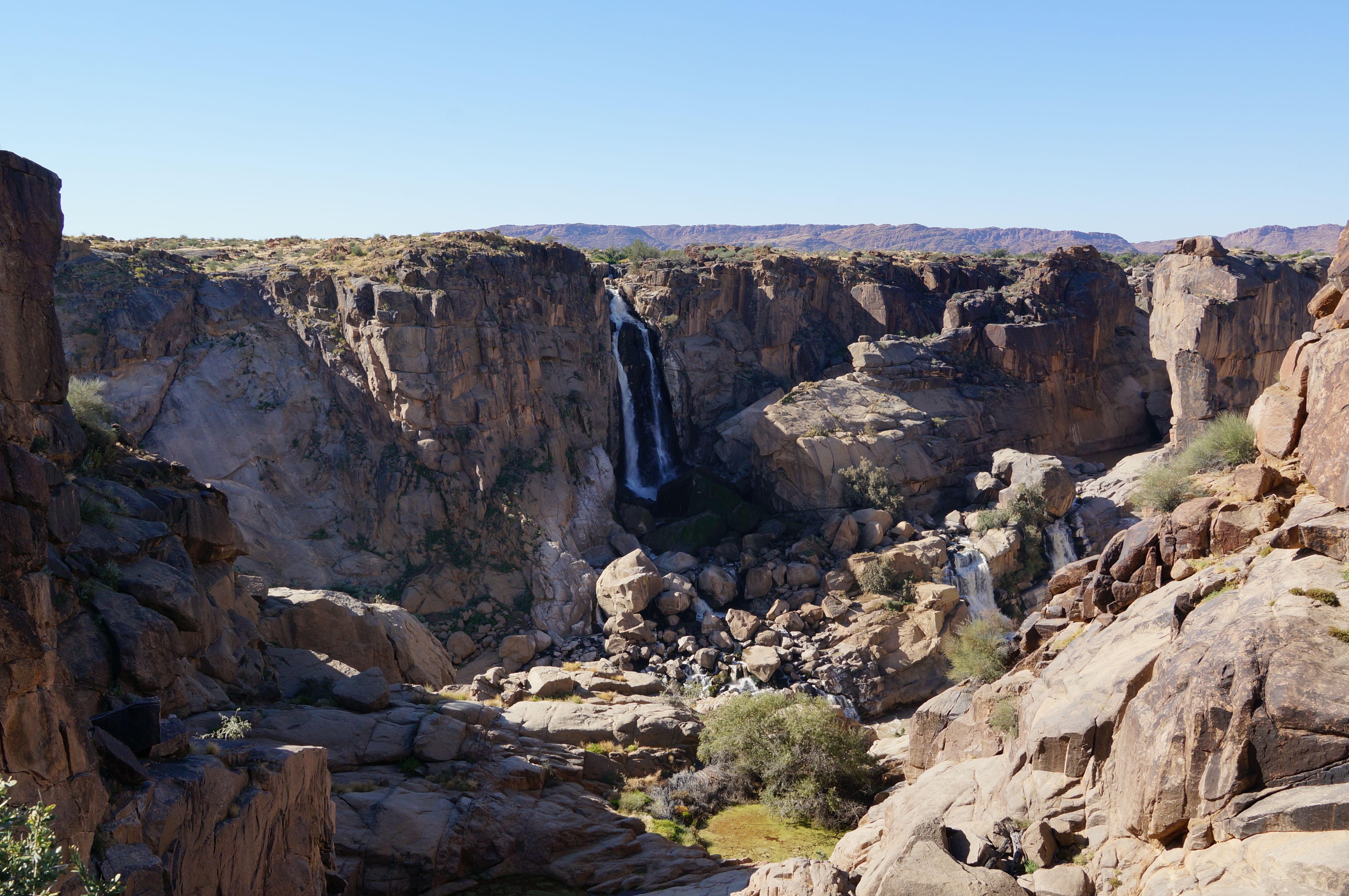 Het land waar we zijn is natuurlijk… Namibië. Ruim 2 weken geleden zijn we de grens overgestoken vanuit Zuid-Afrika. Bij de vorige update zaten we nog in de buurt van Augrabies-watervallen, onze laatste stop in Zuid-Afrika. Dat laat zich nog een keer van zijn mooiste kant zien als we via een binnendoorroute naar de hoofdweg rijden die naar Namibië leidt. De grensovergang is een kwestie van tien loketten stempeltjes en papiertjes halen, we zijn er in anderhalf uur doorheen. Waarschijnlijk de meest soepele grensovergang die we gaan meemaken dit jaar.