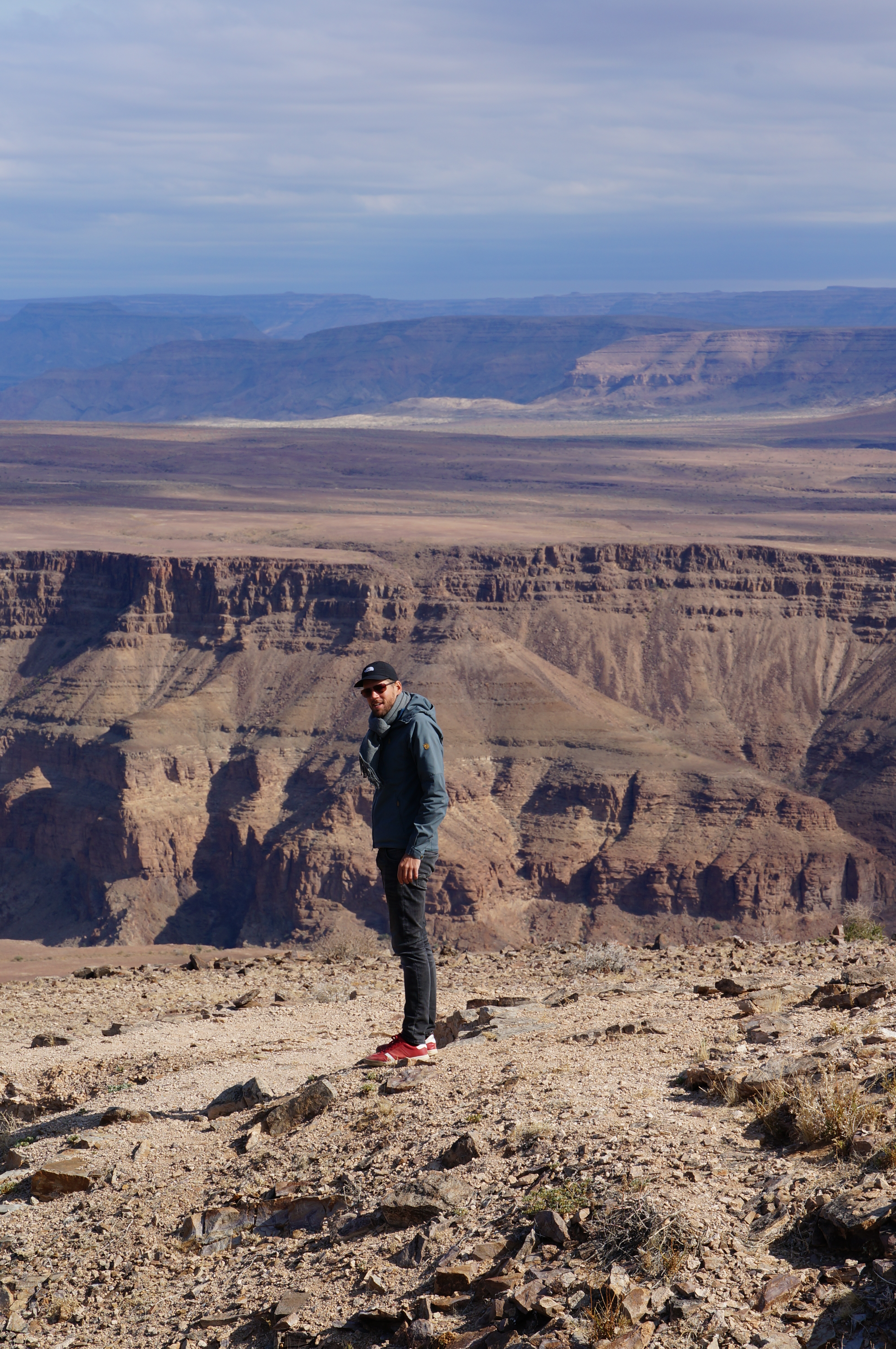 De volgende dag bezoeken we de Fish River Canyon. 160 kilometer lang en tot 550 meter diep. Als we op het belangrijkste uitkijkpunt aflopen en het panorama langzaam zichtbaar wordt, voel ik heel even kippenvel. Tjonge, wat is dít immens en mooi. Sommige dingen zijn gewoon niet te bevatten als je ze ziet. En ja, de Fish River Canyon is mooier dan de Grand Canyon. Volgens ons dan. We rijden en wandelen de hele dag langs de rand en worden na elke bocht weer verrast door een nieuw uitzicht op de kloof en de omgeving. En we zijn zo’n beetje de enige bezoekers, waardoor we ons nog nietiger voelen tussen zoveel natuurgeweld.