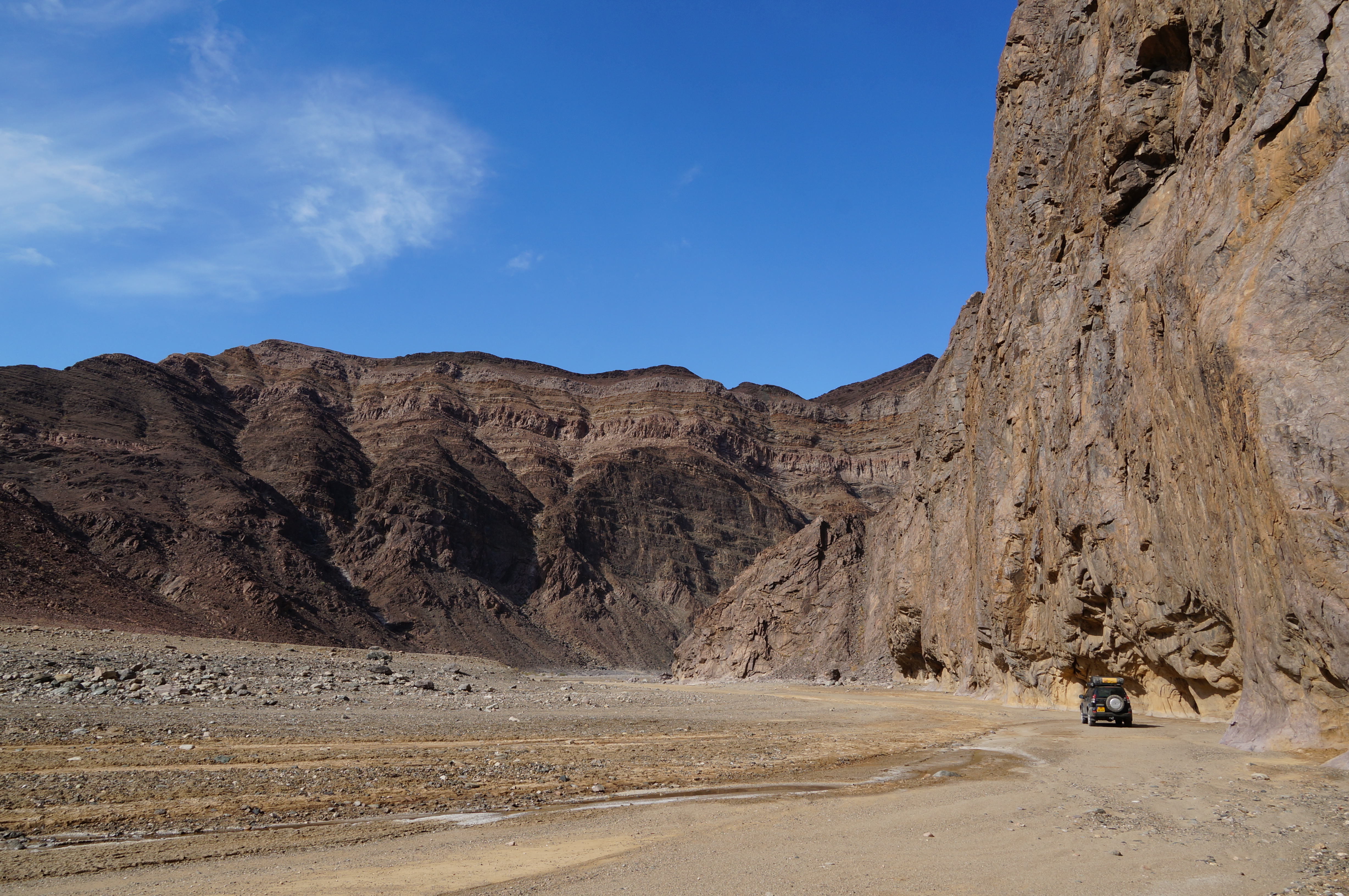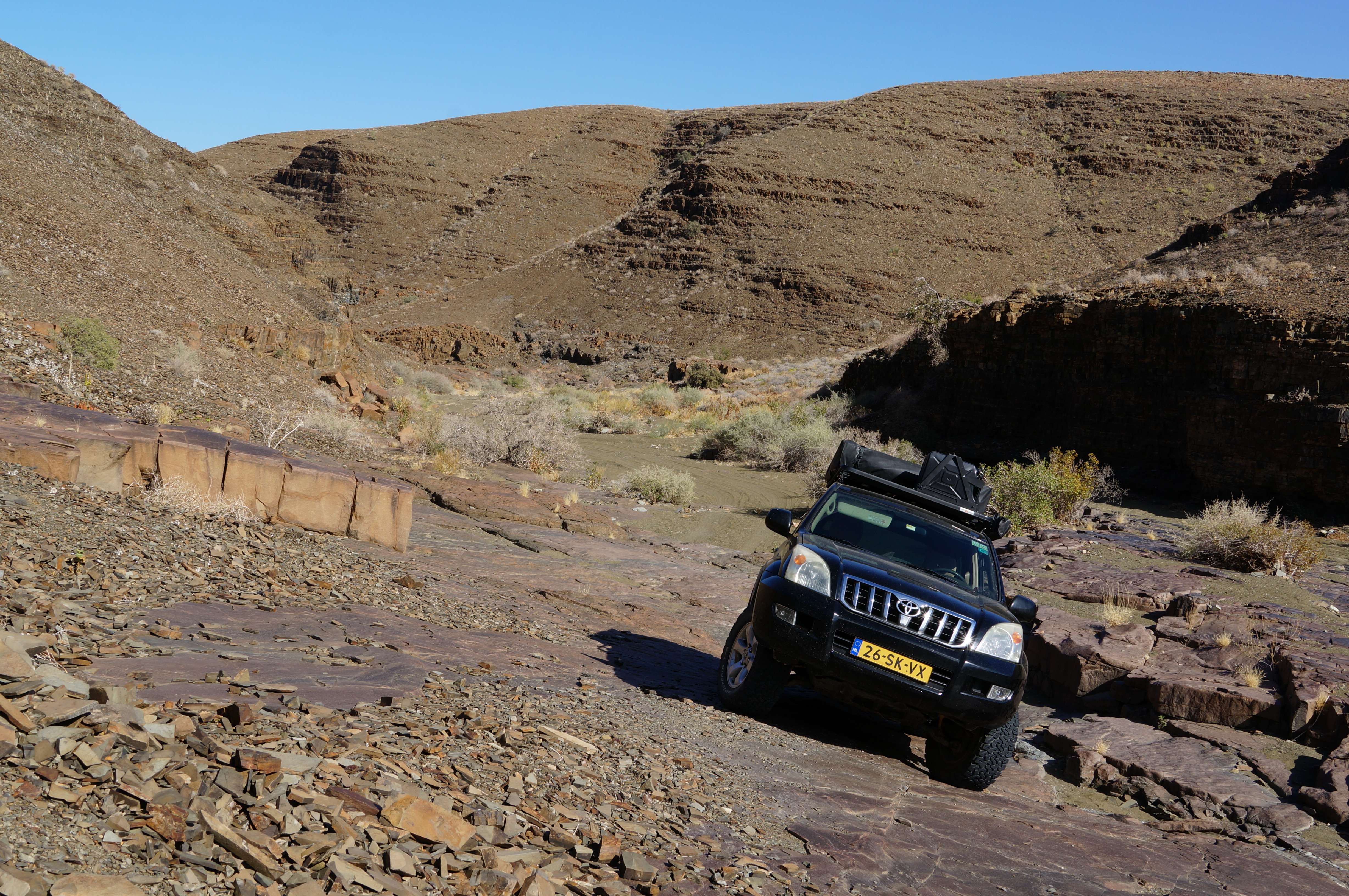 Op dag 4 steelt Namibië definitief ons hart, als we door een onwerkelijk landschap een stuk naar het zuiden rijden. Het is alsof we op de maan, Mars en Jupiter tegelijk zijn. Onderweg zijn in Namibië laat zich niet in woorden en beelden bevatten. Daarvoor is het te groots, te wijds en te onwerkelijk. Alsof dat nog niet genoeg is vinden we ook vandaag weer een heel bijzonder lunchplekje. Een jeepspoor vanaf de weg leidt een droogstaande rivierbedding in, waar we tussen de tientallen meters hoge rotsen ons keukentje uitschuiven en een eitje bakken. Als je me van te voren had gevraagd hoe een jaar reizen eruit zou zien, hoe je dat zou kunnen vangen in een moment: this is it. Samen de wereld ontdekken en op bijzondere plekken komen waar we niemand tegenkomen.