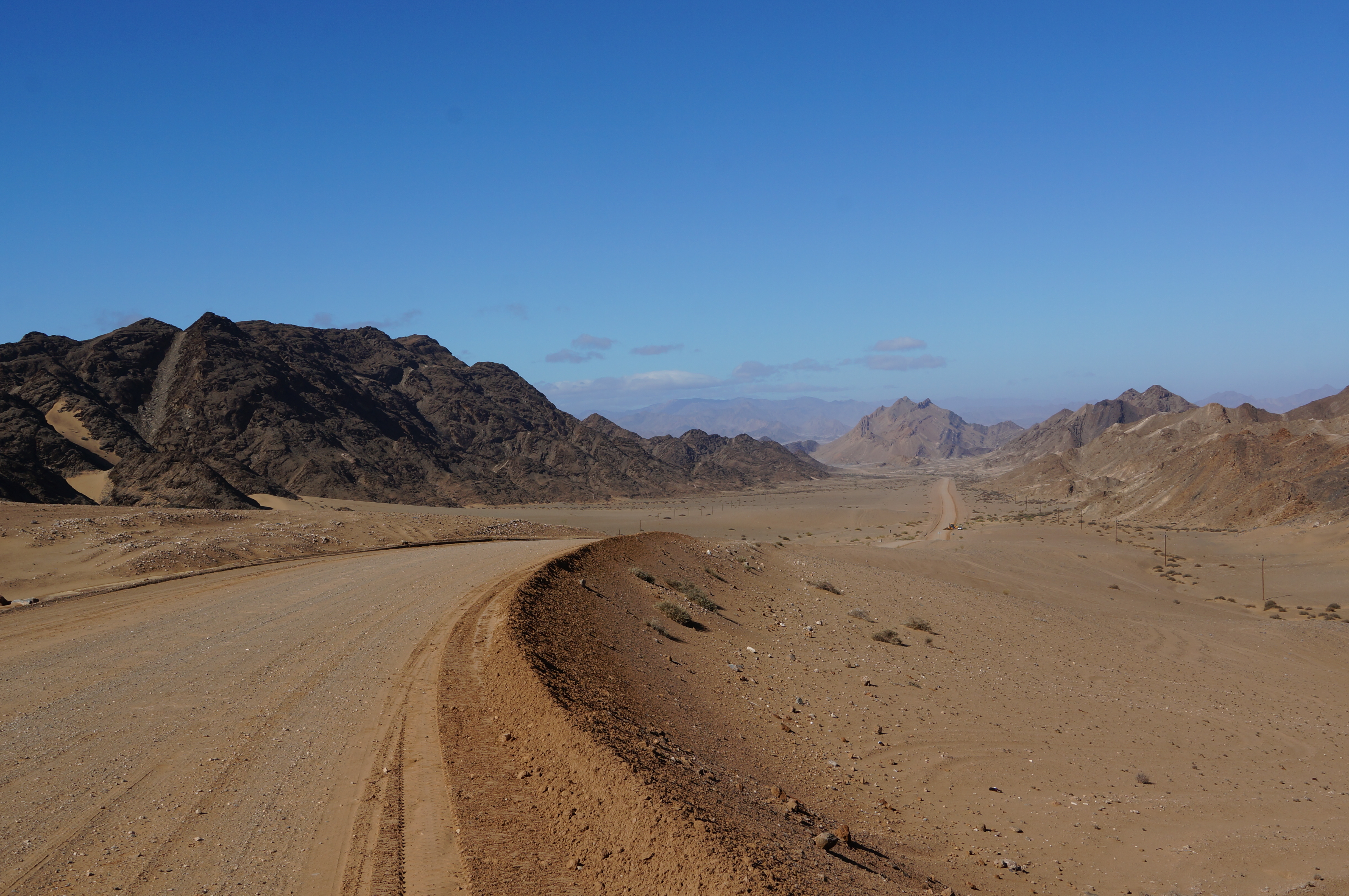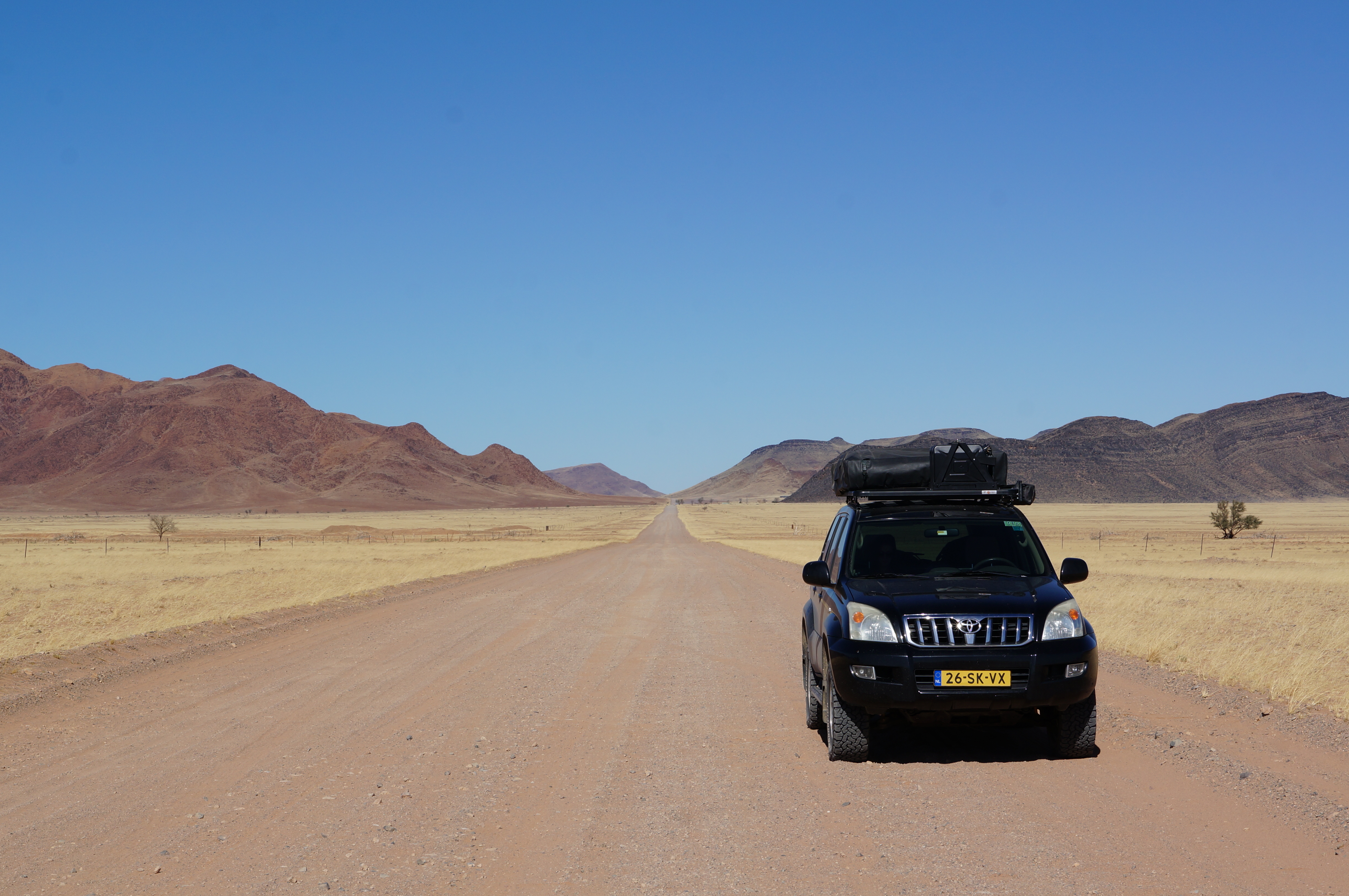 Een land van extremen, leegte en uitzonderlijk mooie natuur. Een land waar dorpjes en steden honderden kilometers uit elkaar liggen. Een land met stoffige wegen, waar we uren overheen rijden zonder iemand tegen te komen. Een land met een grillig klimaat, waar we zandstormen, droogte, regen en kou trotseren. En een land dat verwart, met zijn Duitse stadjes en bizarre landschappen.