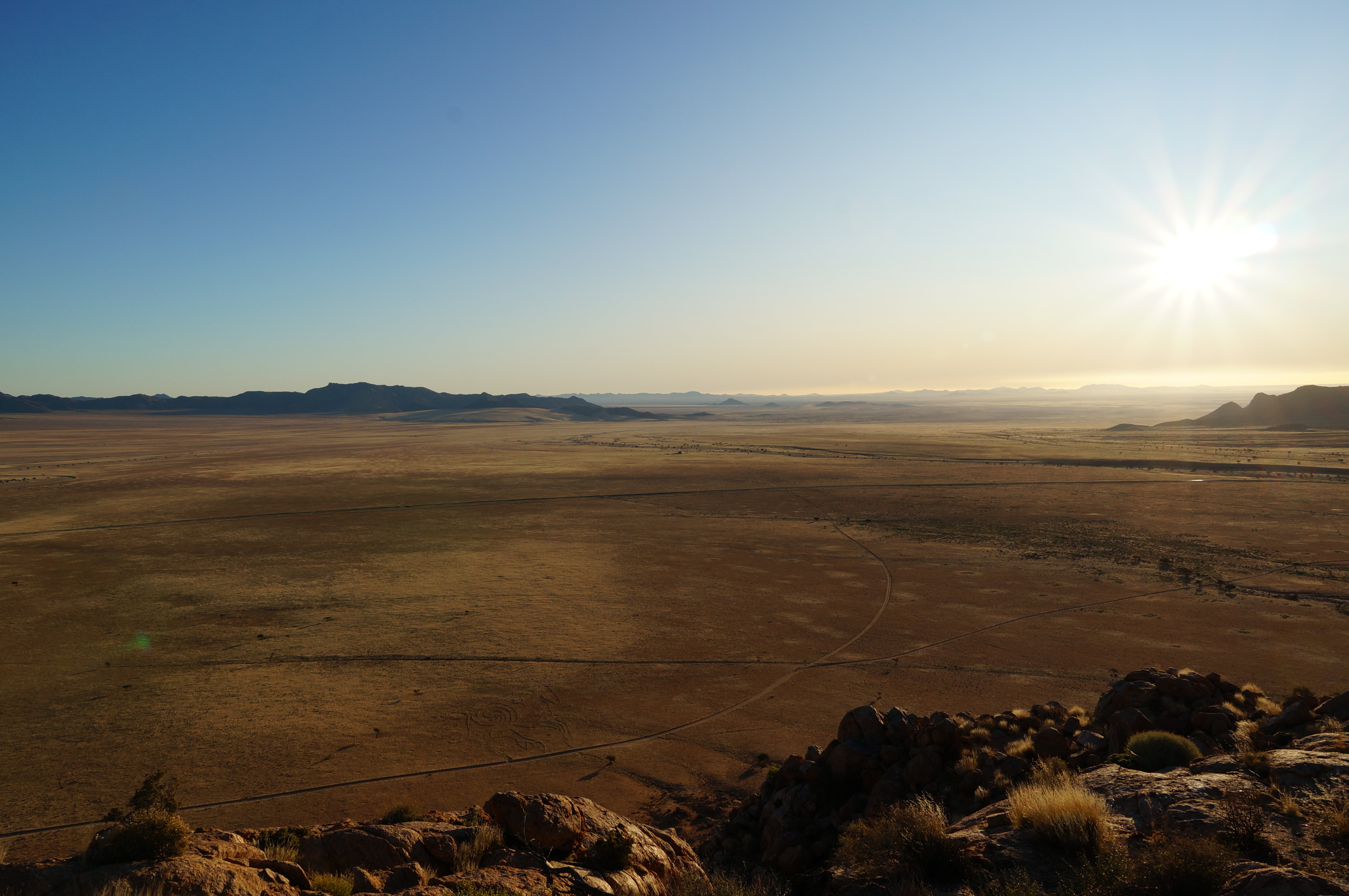 Namibië it is! We kunnen natuurlijk niet blijven zeggen dat onze reis nu écht begint, maar toch voelt het wel weer een beetje zo. Het is meteen even zoeken, want ’s avonds komen we erachter dat we de enige supermarkt (of wat daar voor door mag gaan) in de wijde omgeving voorbij zijn gereden. Inkopen doen is plannen, want winkels liggen uren rijden bij elkaar vandaan. Je kunt hier zelfs dagen rondrijden zonder een winkel tegen te komen. De eerste nacht in Namibië kamperen we terwijl er een fris windje waait, naar wat later blijkt nog een maar een kleine voorbode van wat ons te wachten staat.