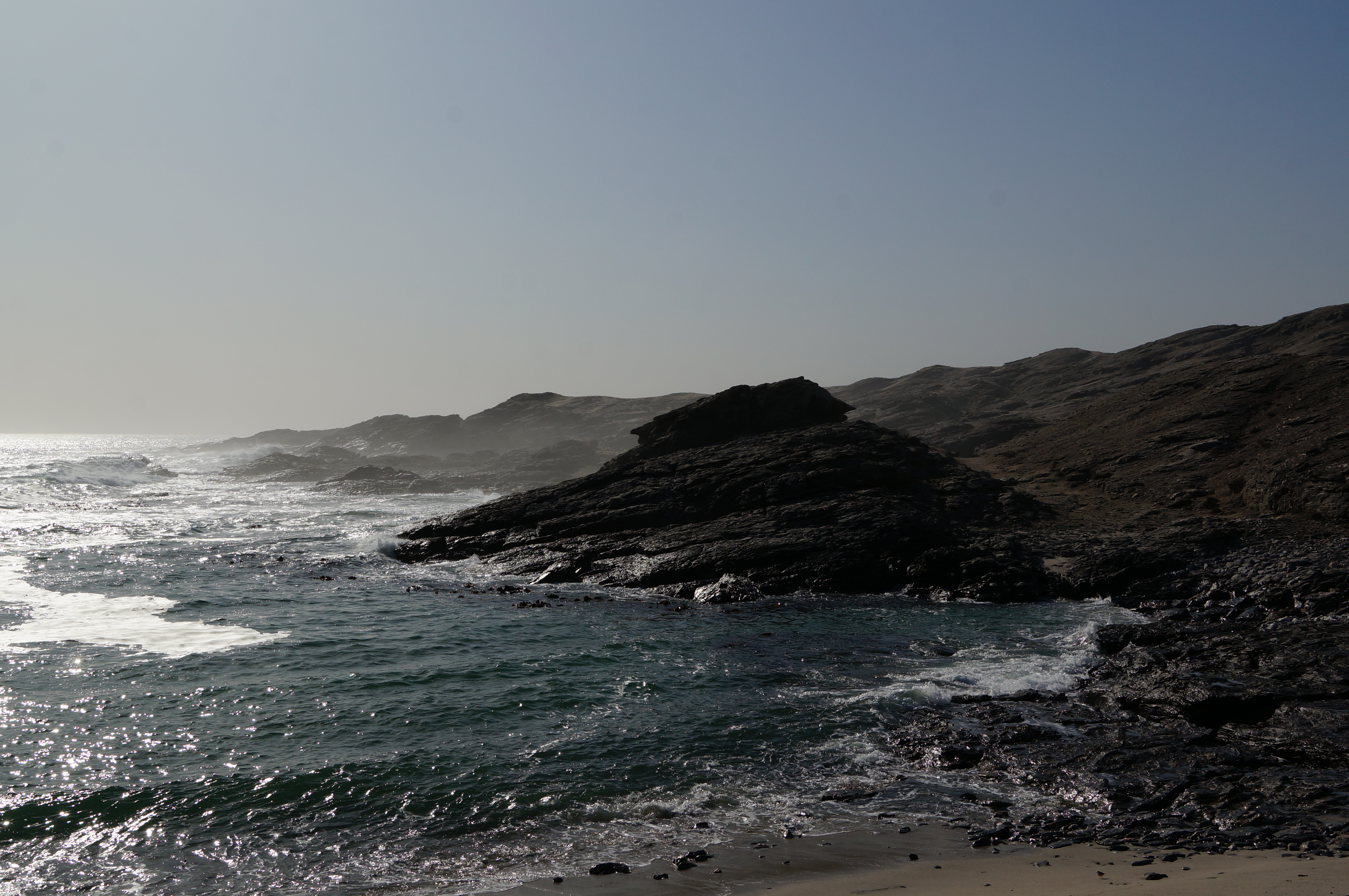 Via het Naukluft Mountains Park, waar we een mooie hike maken en een stukje met kettingen langs een rotswand moeten klauteren, rijden we weer naar de kust. We zitten nu in Swakopmund, een stad met aangeharkte parkjes, palmbomen, rotondes en goede koffietentjes. En een Toyota-garage, zodat we onze auto de benodigde liefde en aandacht kunnen geven. Ook laten we bij een bedrijfje onze tenthoes repareren. Na wat rondvragen bij mensen die mensen kennen (altijd handig), komen we op een industrieterreintje uit bij de juiste meneer. Onze tenthoes waait bij de sluiting steeds open en gaat dan klapperen tegen de auto aan. Dat was eerder al zo, maar het schaarse klittenband dat er zat begon ook nog eens los te laten waardoor het steeds erger werd. Nu zitten er dikke, nieuwe stukken klittenband op en dat voor maar 15 euro én binnen een halfuur gefixt. Niet alles gaat langzaam in Afrika.