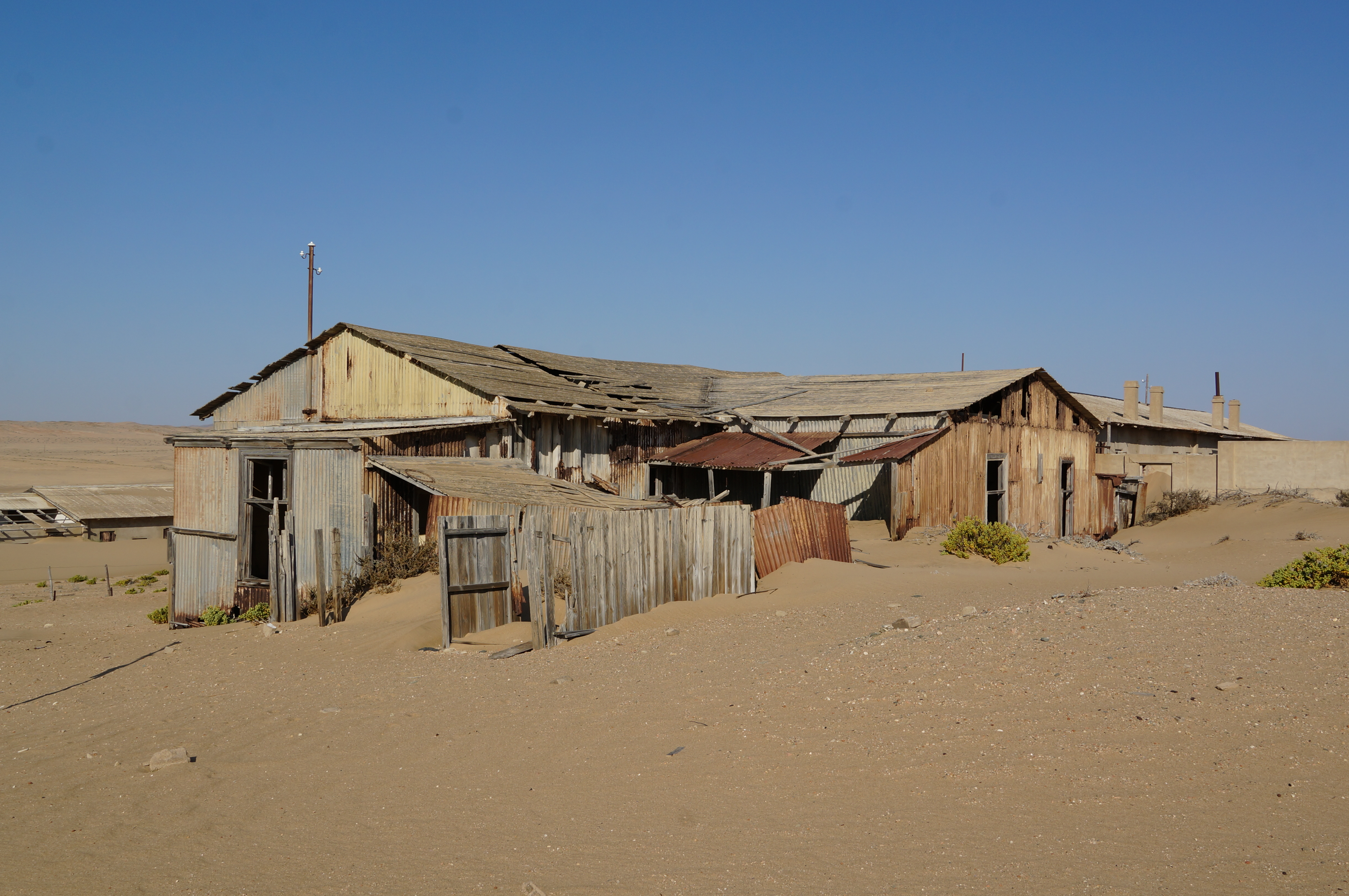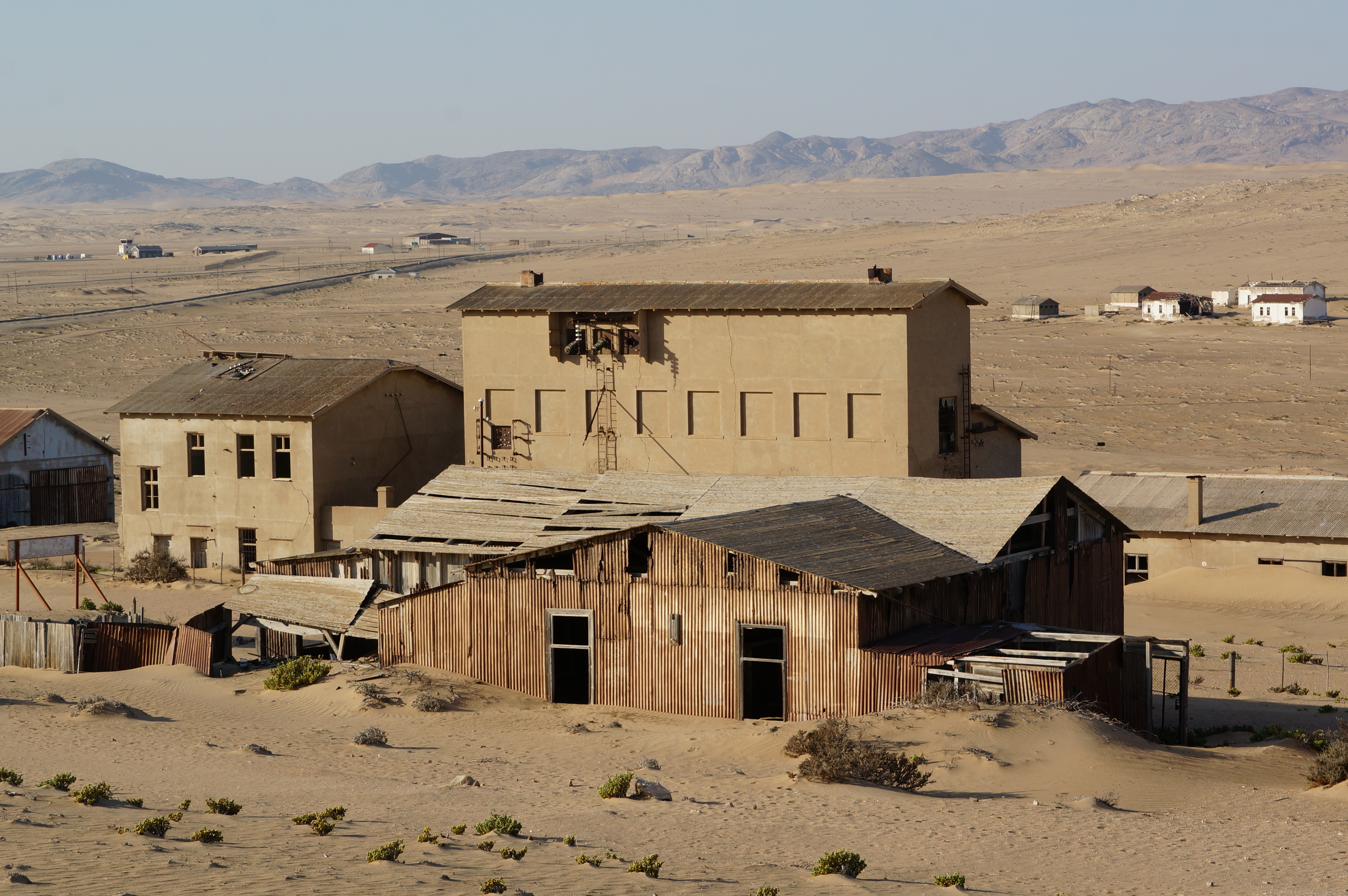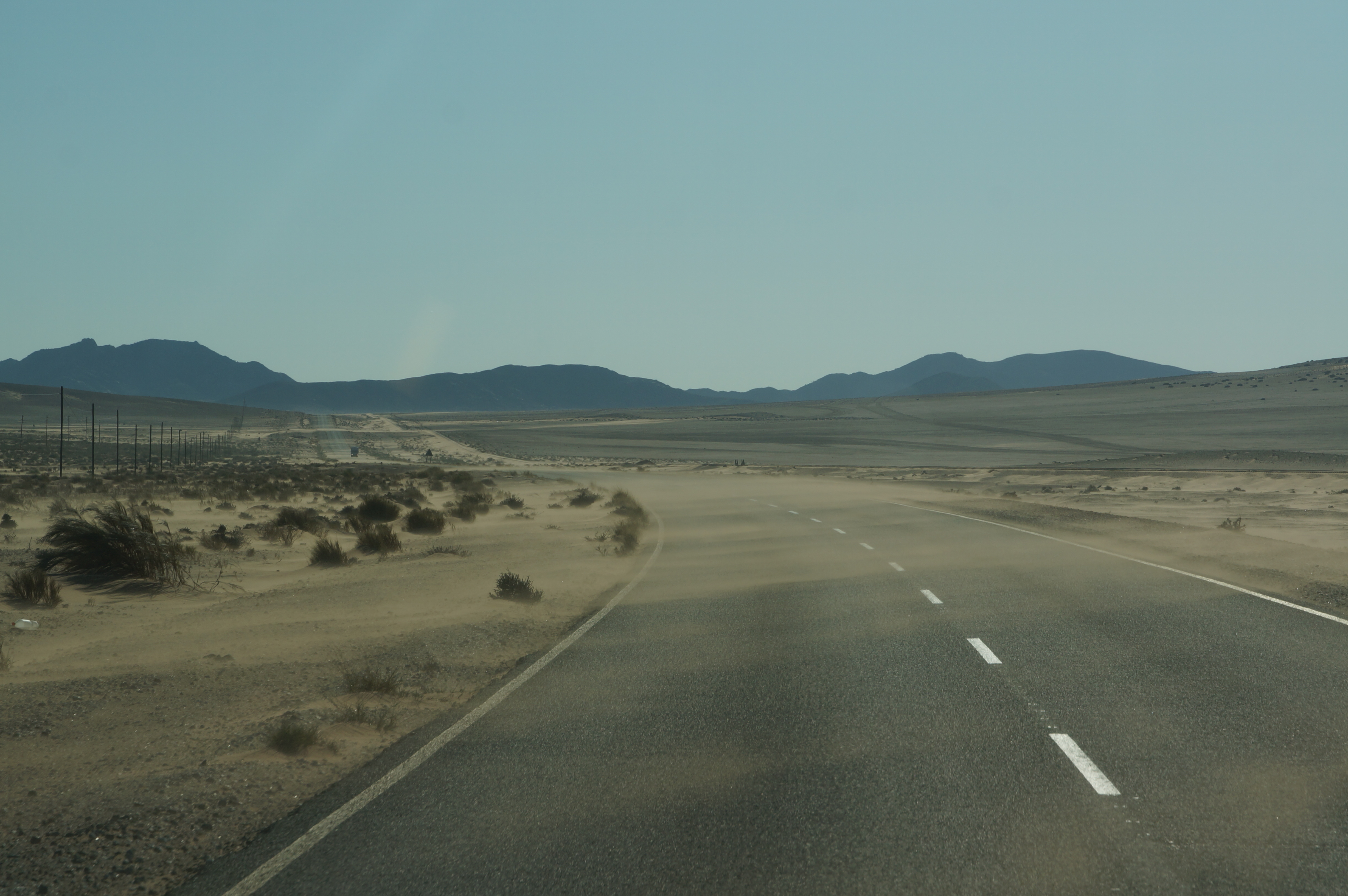 De volgende dag waait het nog harder. We ruimen snel de boel op en rijden richting de kust, naar het plaatsje Lüderitz. Waarschijnlijk de meest incongruente plek op aarde. Eerst rijden we uren door de woestijn, vervolgens verandert de kleur van het landschap in grijs. Als de aarde vergaat en het stof is opgetrokken, dan is dit wat er waarschijnlijk overblijft. En dan zijn daar ineens de zee en het stadje met zijn palmbomen en Duitse huisjes.