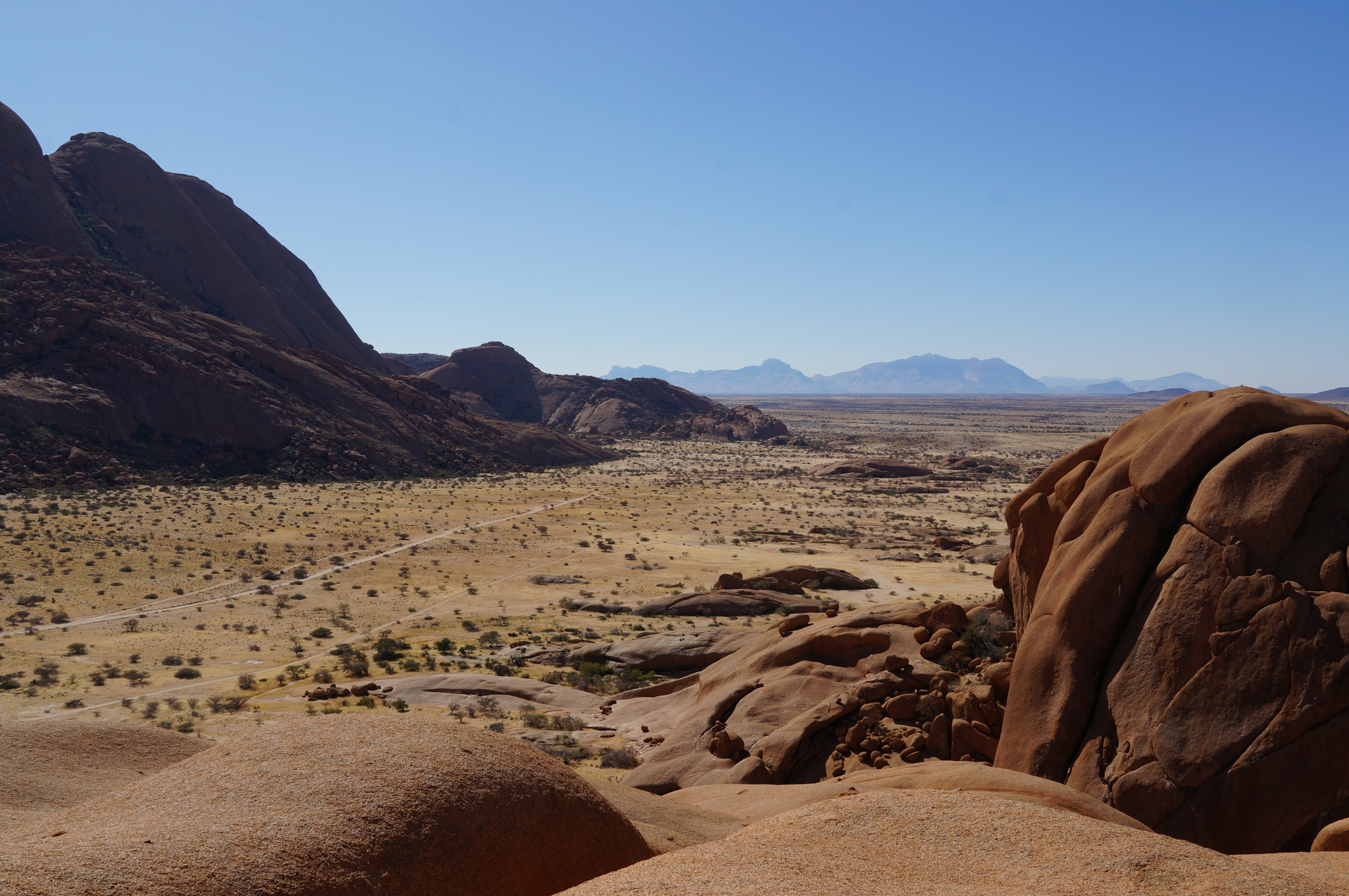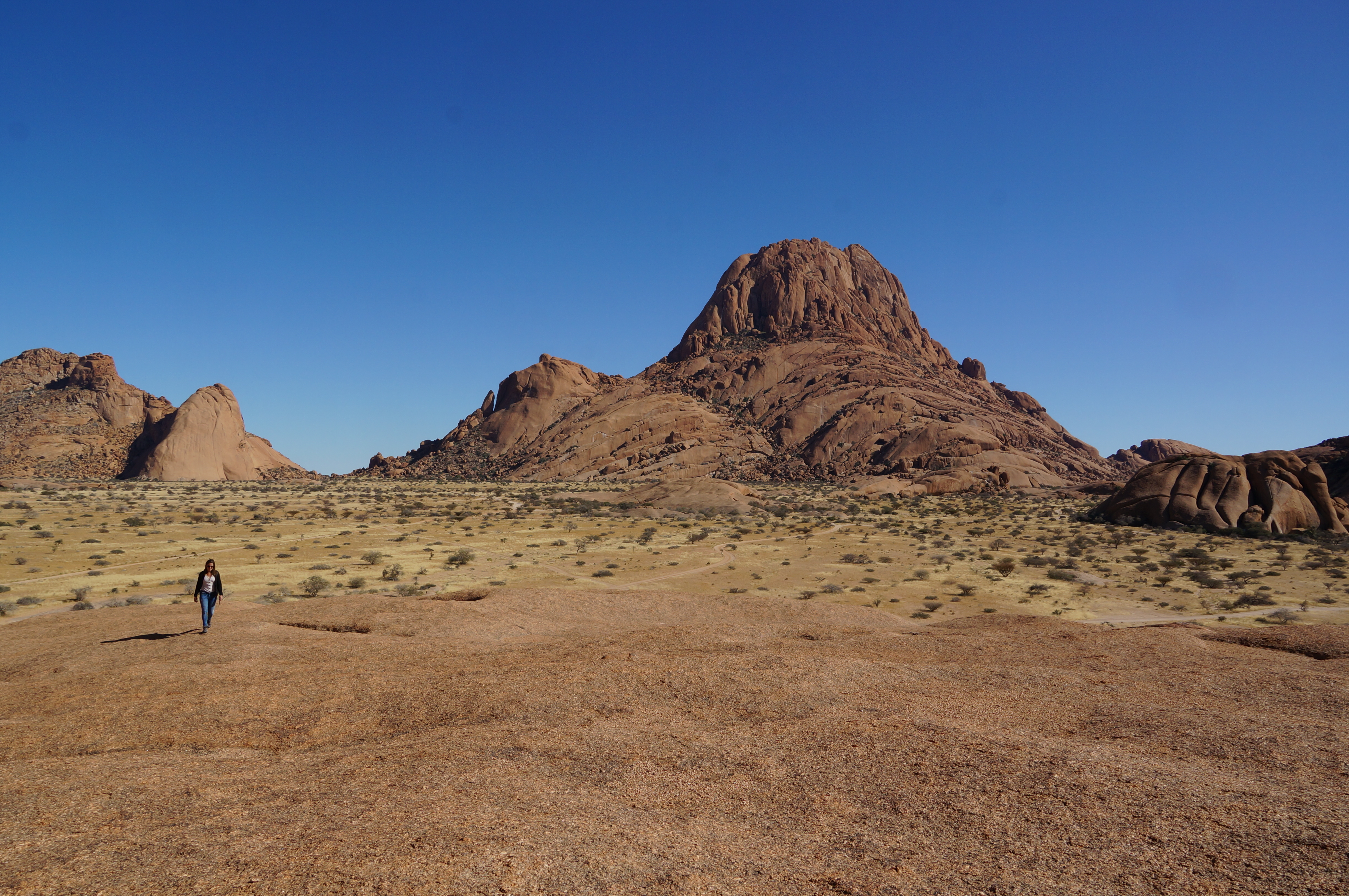 We laten de kust achter ons en rijden vervolgens naar Spitzkoppe. Hier liggen grote, gladde rotsen als enorme olifantendrollen in het vlakke landschap. We beklimmen er paar, zodat we 360 graden uit kunnen kijken over de omgeving. ’s Avonds kamperen we tussen de stenen. Als het licht van het kampvuur tegen de rotsen weerkaatst en we boven ons hoofd ontelbaar veel sterren zien, beseffen we maar weer eens wat een bijzondere reis we aan het maken zijn. Dit zijn herinneringen voor het leven.