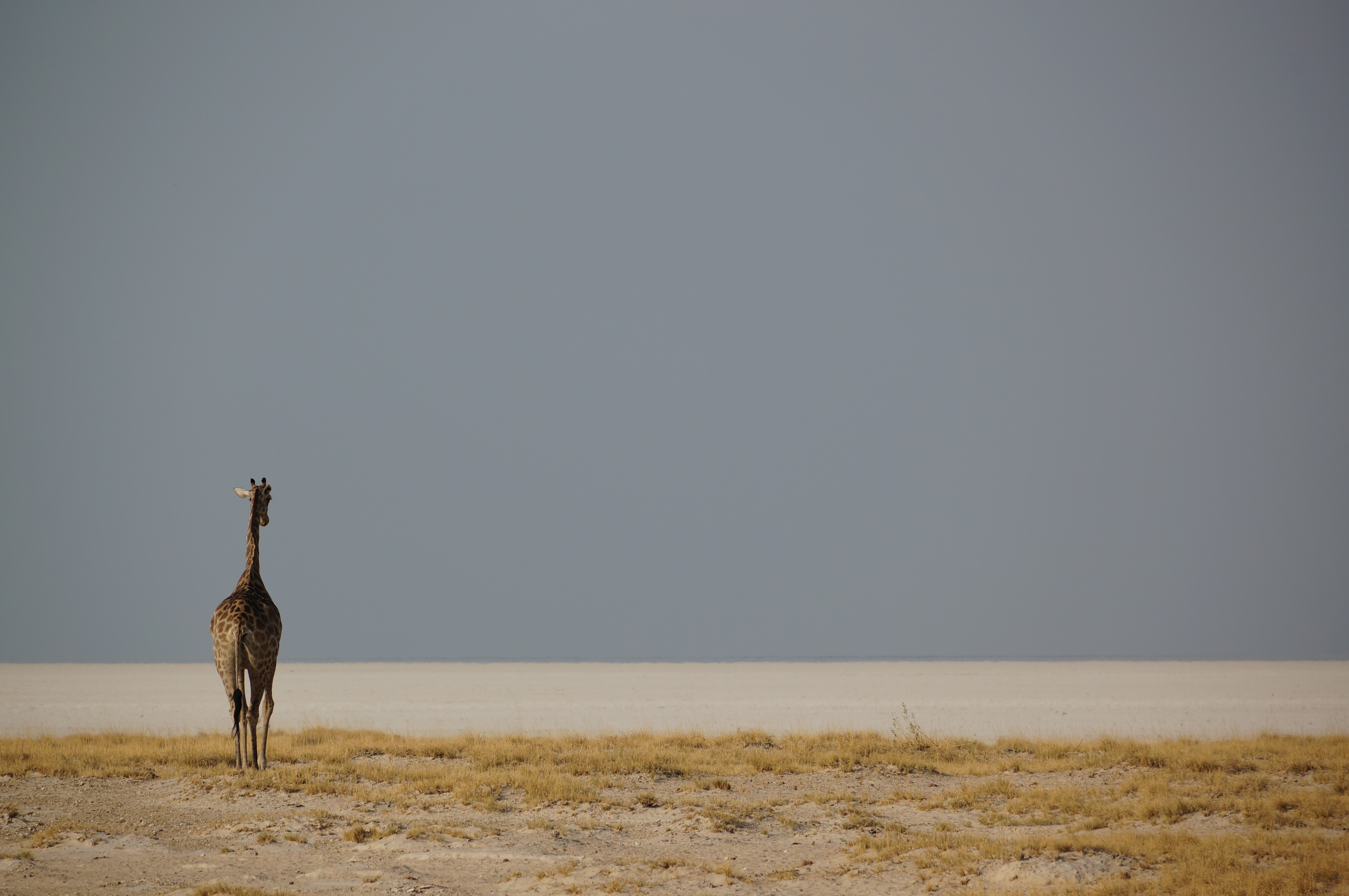Na een regel- en wasdagje vertrekken we richting het Etosha National Park. De route er naartoe voert door vlakke weides, met goudgeel gras, acaciabomen en termietenheuvels. Etosha ligt rondom een enorme zoutpan en is zo plat als een pannenkoek. In dit 22.000 vierkante kilometer grote park leven zo’n beetje alle grote dieren die je op het Afrikaanse continent kunt tegenkomen. We zijn er drie dagen en zien honderden zebra’s, enorme kuddes springbokken en impala’s, kudu’s en gnoes. We zien giraffes die statig voorbijlopen met op de achtergrond de bijna lichtgevende zoutvlakte, olifanten die voor onze neus oversteken en neushoorns die ’s avonds bij de waterpoel komen drinken. In de buurt van de campings in het park zijn de poeltjes in het donker een beetje verlicht, waardoor we kunnen zien hoe neushoorns, olifanten, hyena’s en giraffes hun nachtdorst komen lessen.