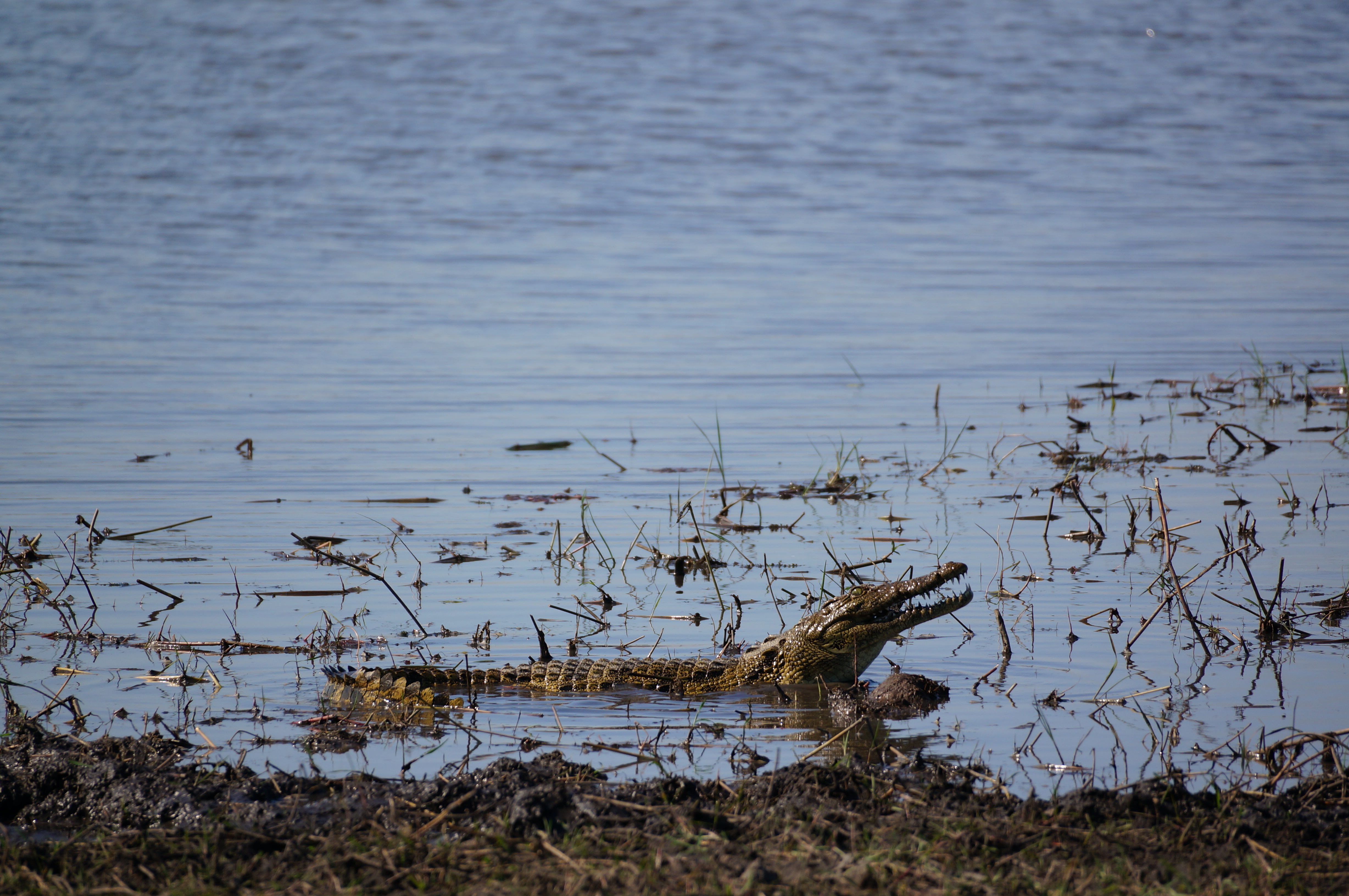 “My name is Bassi”. Je begrijpt dat ik enige moeite had om mijn lach in te houden toen kapitein Bassi zich voorstelde. Bassi is geen grappenmaker, maar iemand die ons naar een van de mooiste momenten van onze reis vaart. Een boottochtje is altijd fijn, maar Bassi weet een speciaal plekje waar hij de boot zachtjes de kant in vaart. Terwijl de zon langzaam ondergaat, kijken we over het stilstaande water naar een groepje nijlpaarden. Met op de achtergrond die indrukwekkende rode bol, opent het nijlpaard zijn enorme bek. Allememaggies, wat is dit gaaf! Een levend schilderij, mooier kan een schilder het niet bedenken.