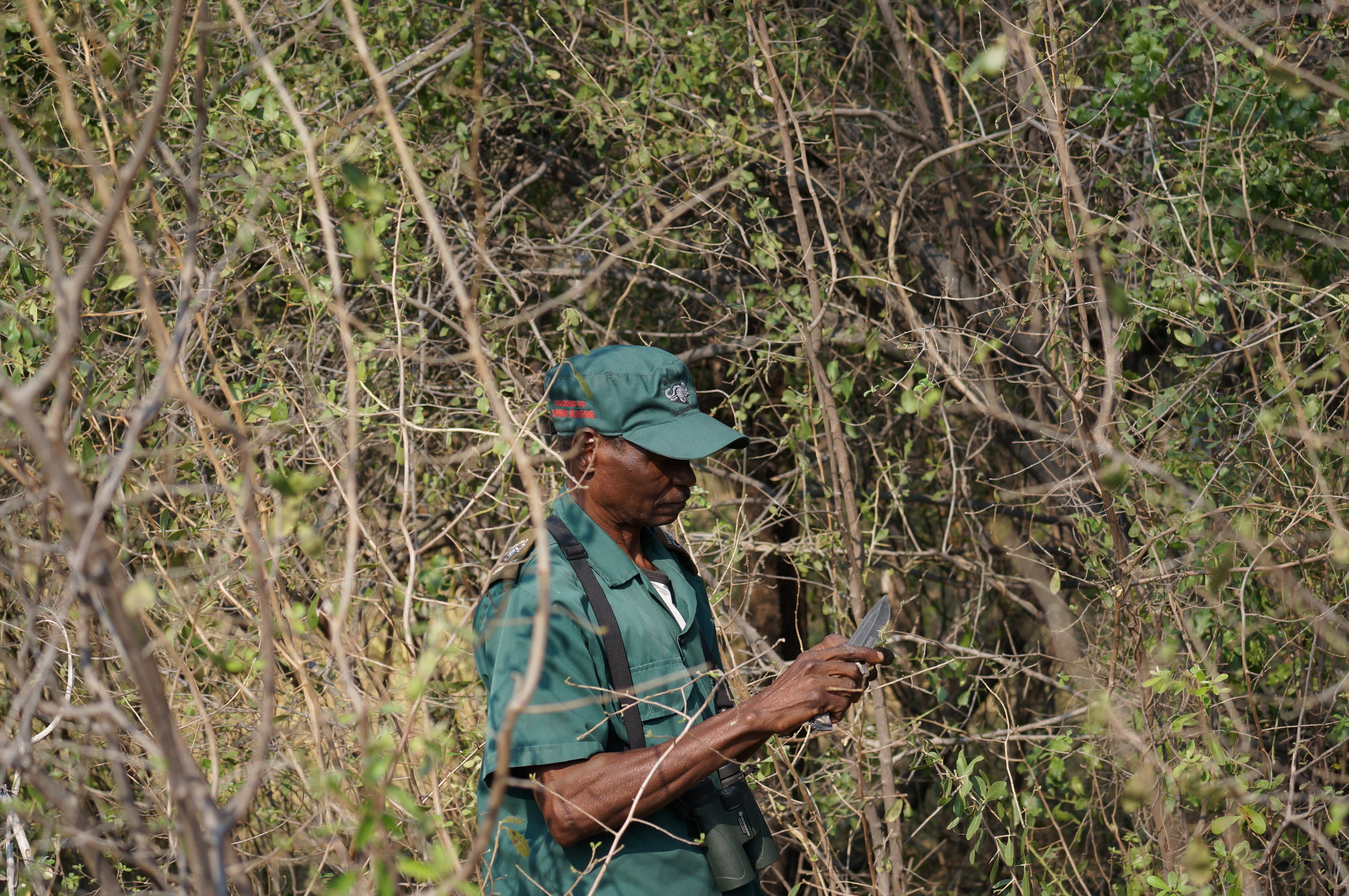 Ik ga de volgende dag op wandelsafari met een boswachter in het gebied. Ellemieke gaat niet mee. Die heeft, toen we aantal jaar geleden in Mozambique een keer kudde buffels tegen het lijf liepen, genoeg wandelsafari’s voor de rest van haar leven gedaan. Die ik nu doe is overigens niet erg spannend, het is meer een cursus bush craften. Ik leer welke planten corona genezen, welke je kunt gebruiken om je tanden te poetsen, met welke je maagproblemen kunt verhelpen en welke giftig zijn. Niet dat ik al die planten en bomen uit elkaar kan houden, dus het lijkt me beter dat ik er maar gewoon van afblijf.