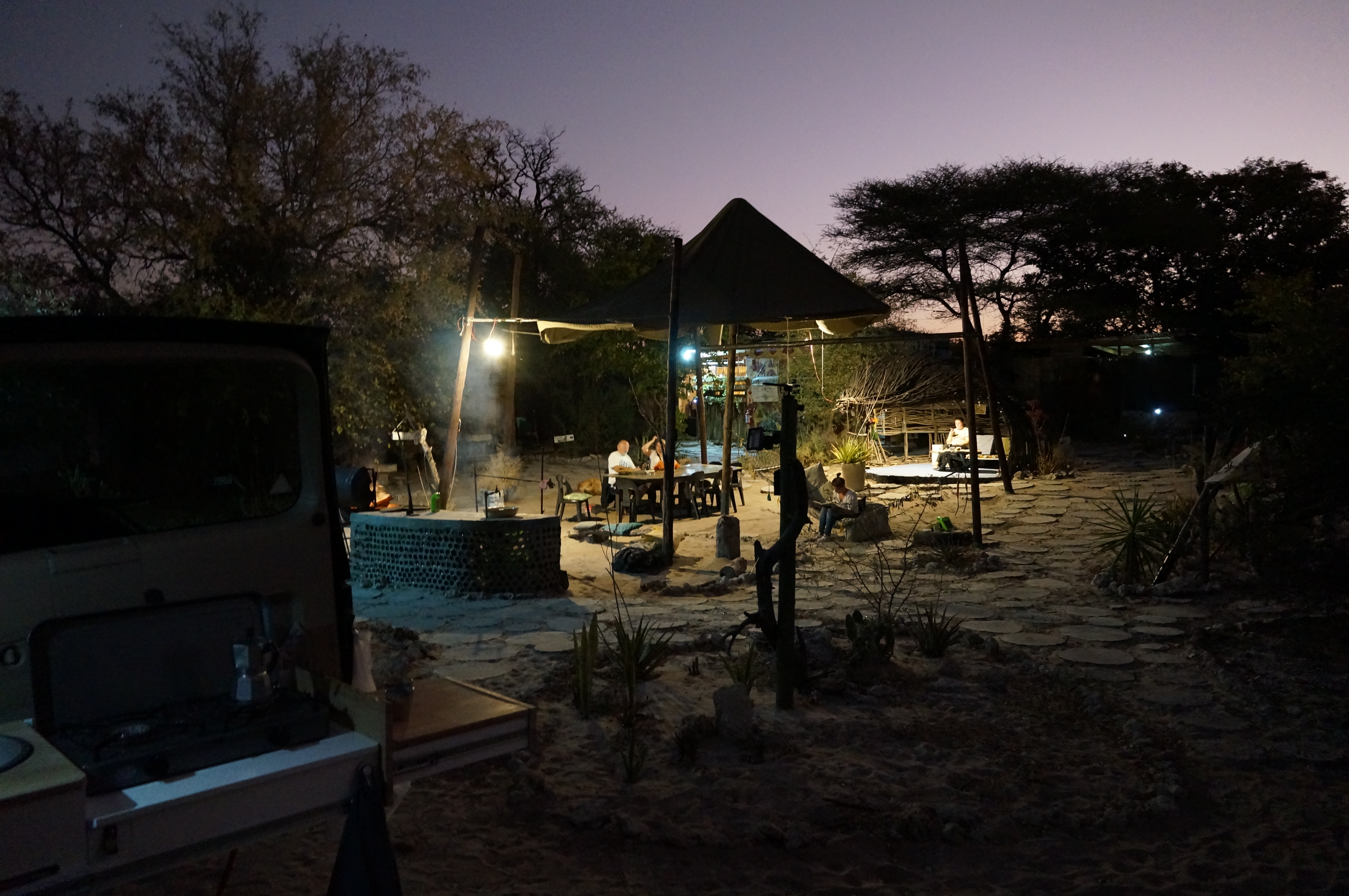 Op dit moment zijn we in Maun, op een camping waar de regionale afdeling van de regeringspartij gisteren een bijeenkomst had. We raken in gesprek met Nonofo, een aardige man die vertelt over de uitdagingen die er zijn voor zijn land. Later in het gesprek blijkt hij ex-minister van infrastructuur en kandidaat-partijleider te zijn. Misschien staan we hier dus wel te praten met de volgende president van Botswana!