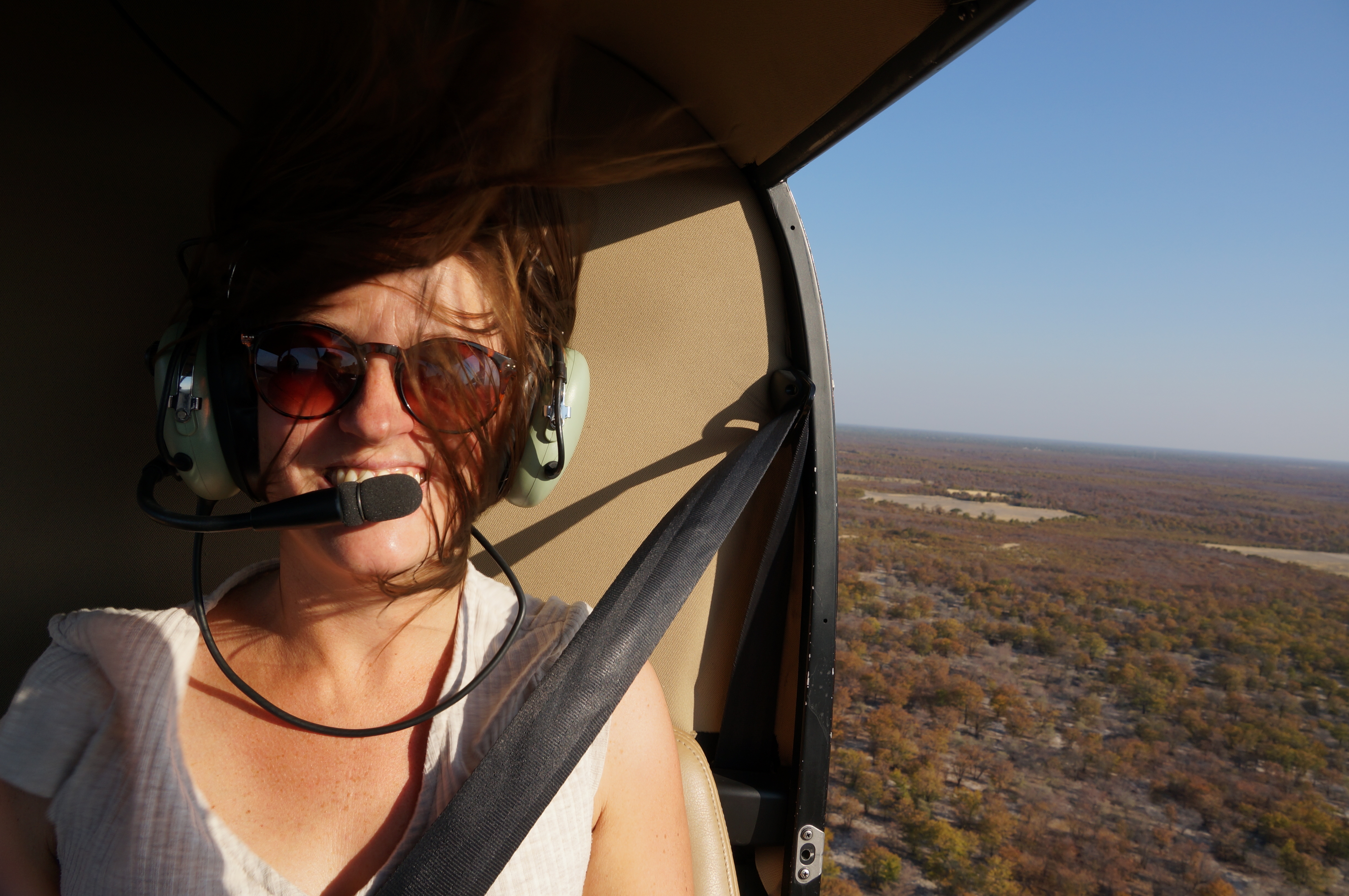 We besluiten helaas om wat plaatsen over te slaan, omdat we het te duur vinden of omdat het bijna niet te regelen is. Maar wat we zeker niet overslaan is de Okavango Delta. In dit enorme uitstroomgebied loopt de Okavango Rivier uit. Die eindigt namelijk niet in zee, maar waaiert uit middenin het land. De mooiste manier om dat waterlandschap te bekijken is natuurlijk van bovenaf, met een helikopter. En ja, dat is ook duur, maar elke cent waard.