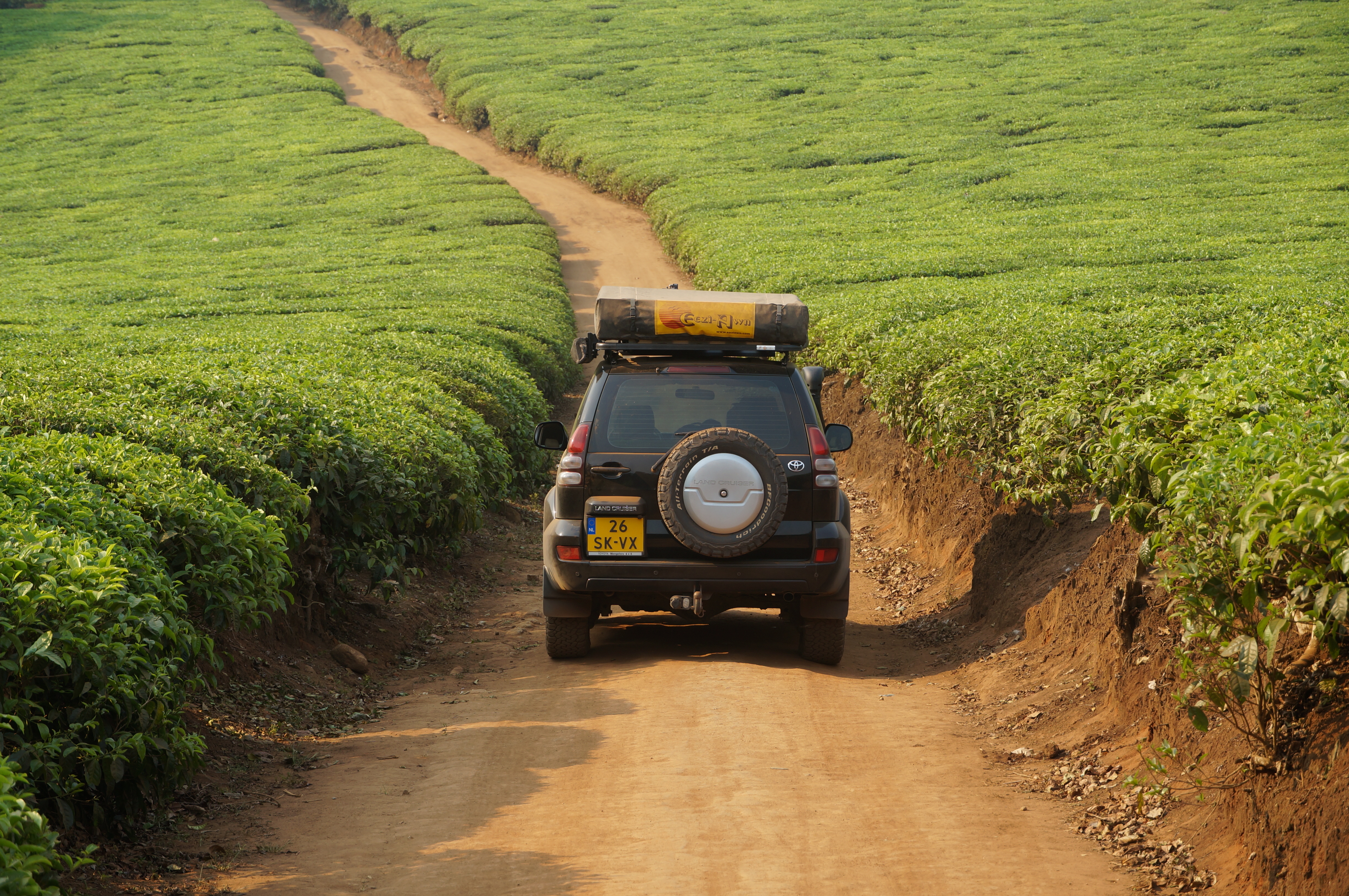 Op de weg terug rijden we dwars door het binnenland van Malawi. Het is een prachtige route, een soort Toscane maar dan met rode in plaats van gele weggetjes en bananenbomen in plaats van cipressen. Het is ook een plek waar nooit reizigers komen en we worden dan ook vrolijk toegezwaaid. Sommige mensen blijven als aan de grond genageld staan en staren ons letterlijk met open mond na. Alsof er zojuist een Land Cruiser met daktent uit de hemel is komen vallen.