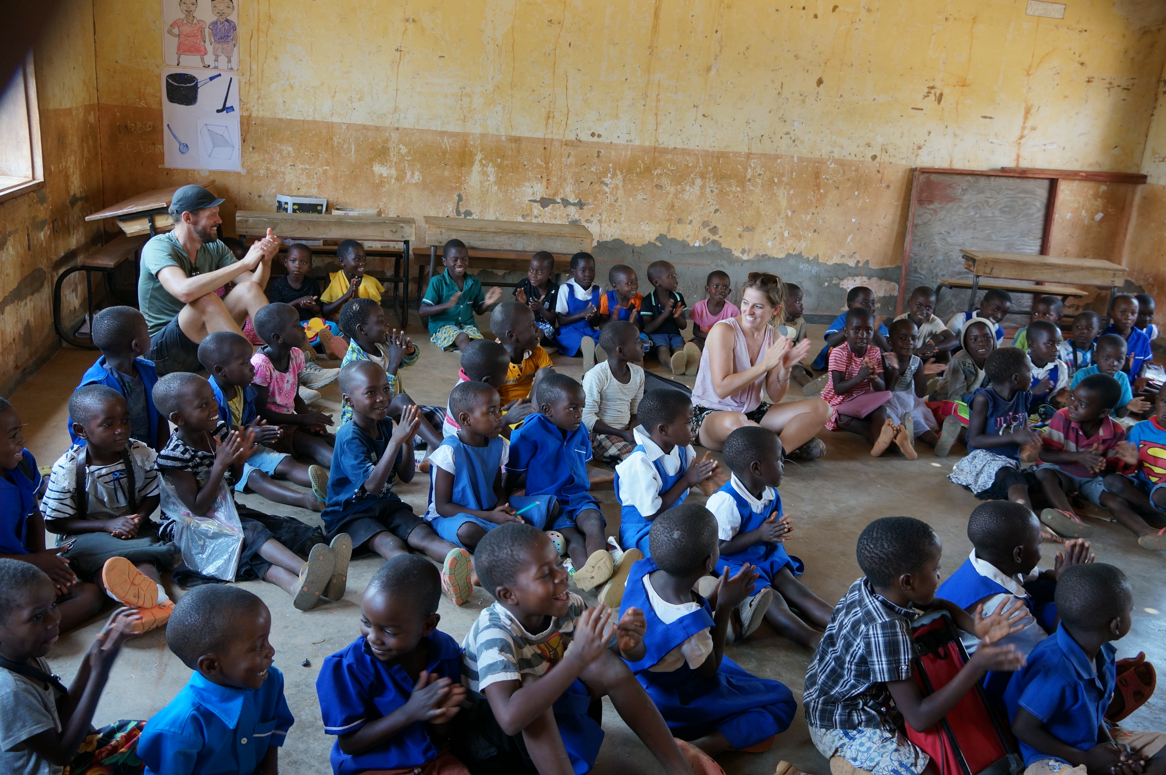 Vanuit Nkhata Bay gaan we met gids Joseph op pad (alles gaat hier met een gids), omhoog een berg op voor wat beweging. We vragen aan Joseph of we een schooltje kunnen bezoeken op de terugweg. Daarop neemt hij ons mee naar de basisschool waar hij zelf als kind op heeft gezeten. Als we aankomen is het net pauze en stromen honderden kinderen op ons af om high fives te geven. We zijn hier als vreemdelingen een bezienswaardigheid. We mogen in alle klassen kijken, krijgen les over lengte- en breedtegraden, ik zet de klas op stelten als ik een groepsfoto wil maken en we bekijken geduldig heel veel ijverig ingevulde schriftjes, die de kinderen trots laten zien.