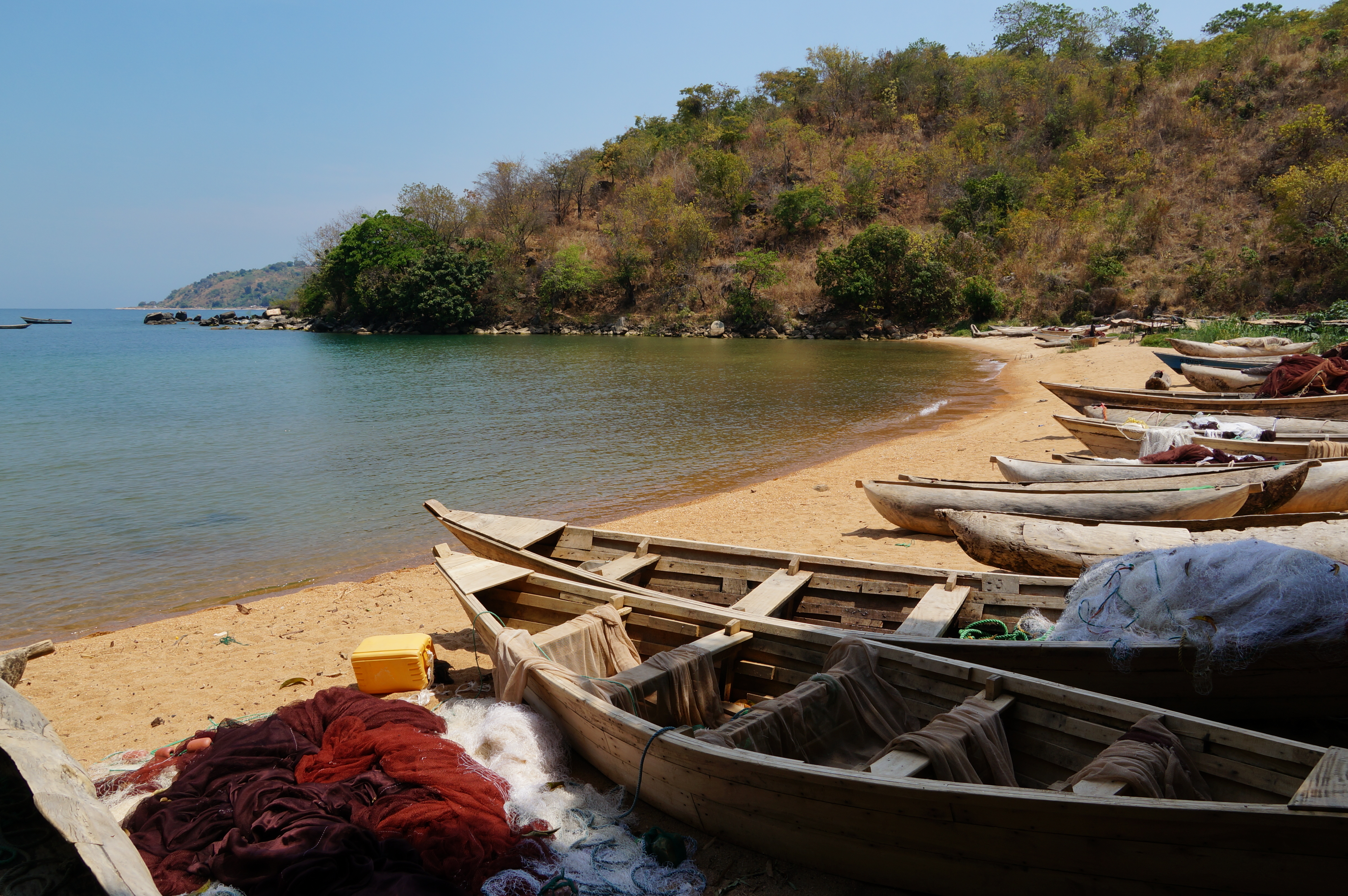 De dagen erna staan we op misschien wel het mooiste campingplekje van Malawi: onder de bomen op het gras, met voor onze tent slechts het strand en het meer van Malawi. We genieten bij Ngala Beach een paar dagen van zand, strand, zon, water en verse vis. Heerlijk! Het is soms net vakantie, dat reizen.
