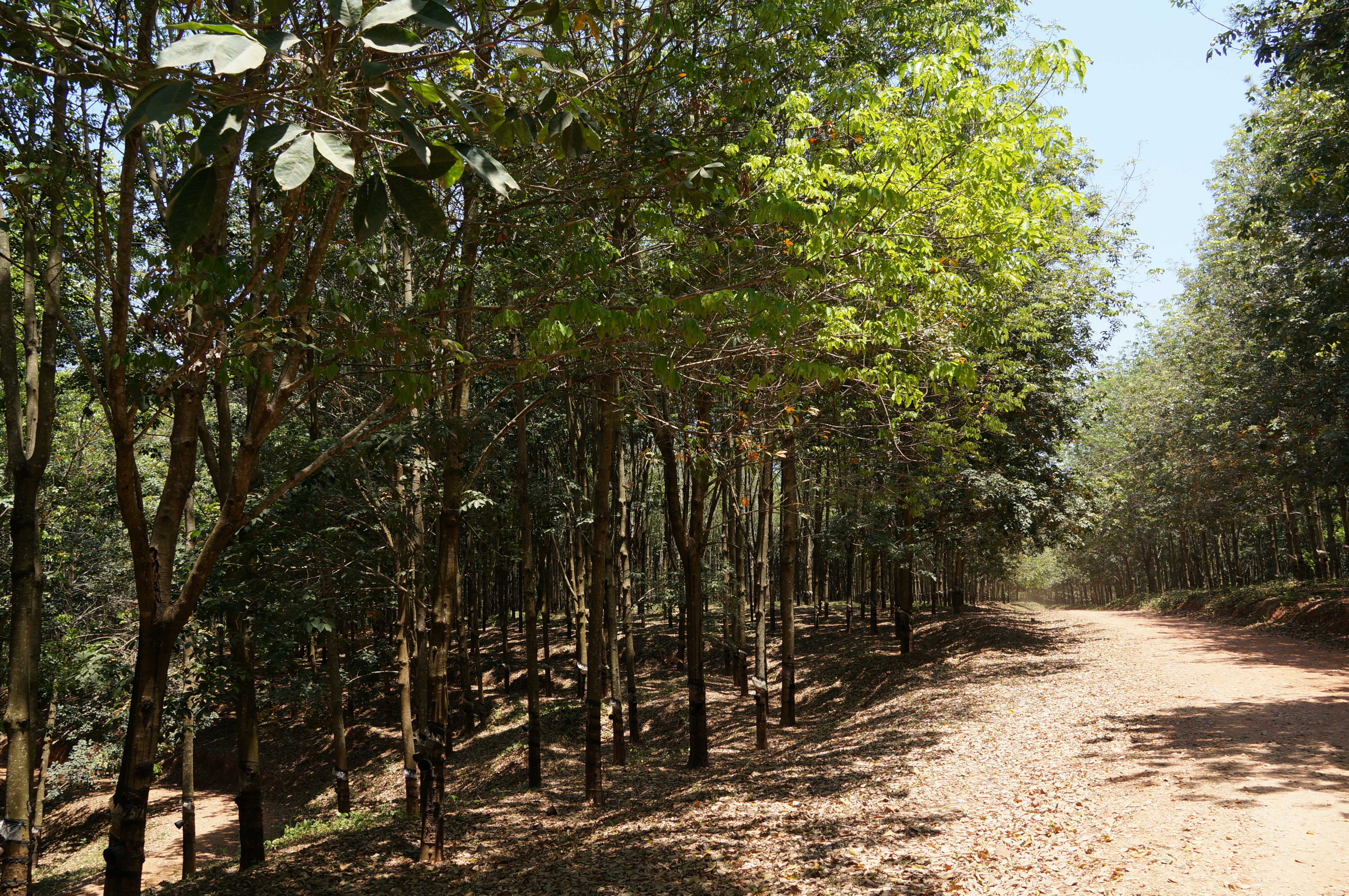 In de buurt van Nkhata Bay zit een enorme rubberplantage, waar we op de heenweg langs zijn gereden. We zijn wel benieuwd of we die kunnen bezoeken en rijden op goed geluk naar het hoofdkantoor. Daar belanden we in een kantoortje van een manager. Uitpuilende, grote ordners staan schots en scheef in de kast en overal liggen stapels papier. Alleen de computer verraadt dat we niet 60 jaar terug in de tijd zijn gegaan. De man ontvangt ons hartelijk en regelt iemand die ons rondleidt. We krijgen uitleg over het planten van de bomen en het nauwkeurige proces van insnijden om het vloeibare rubber uit de boom te krijgen.