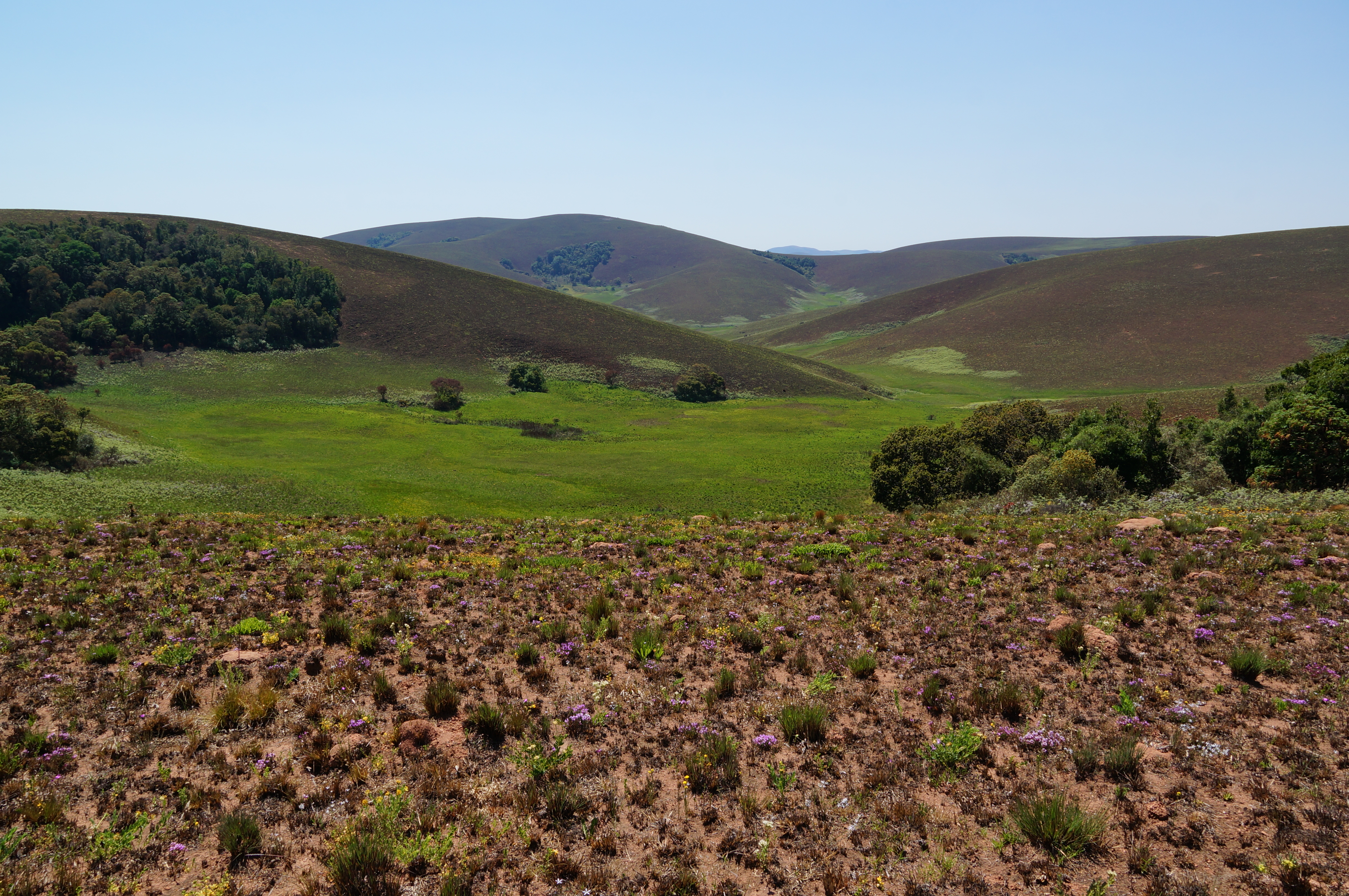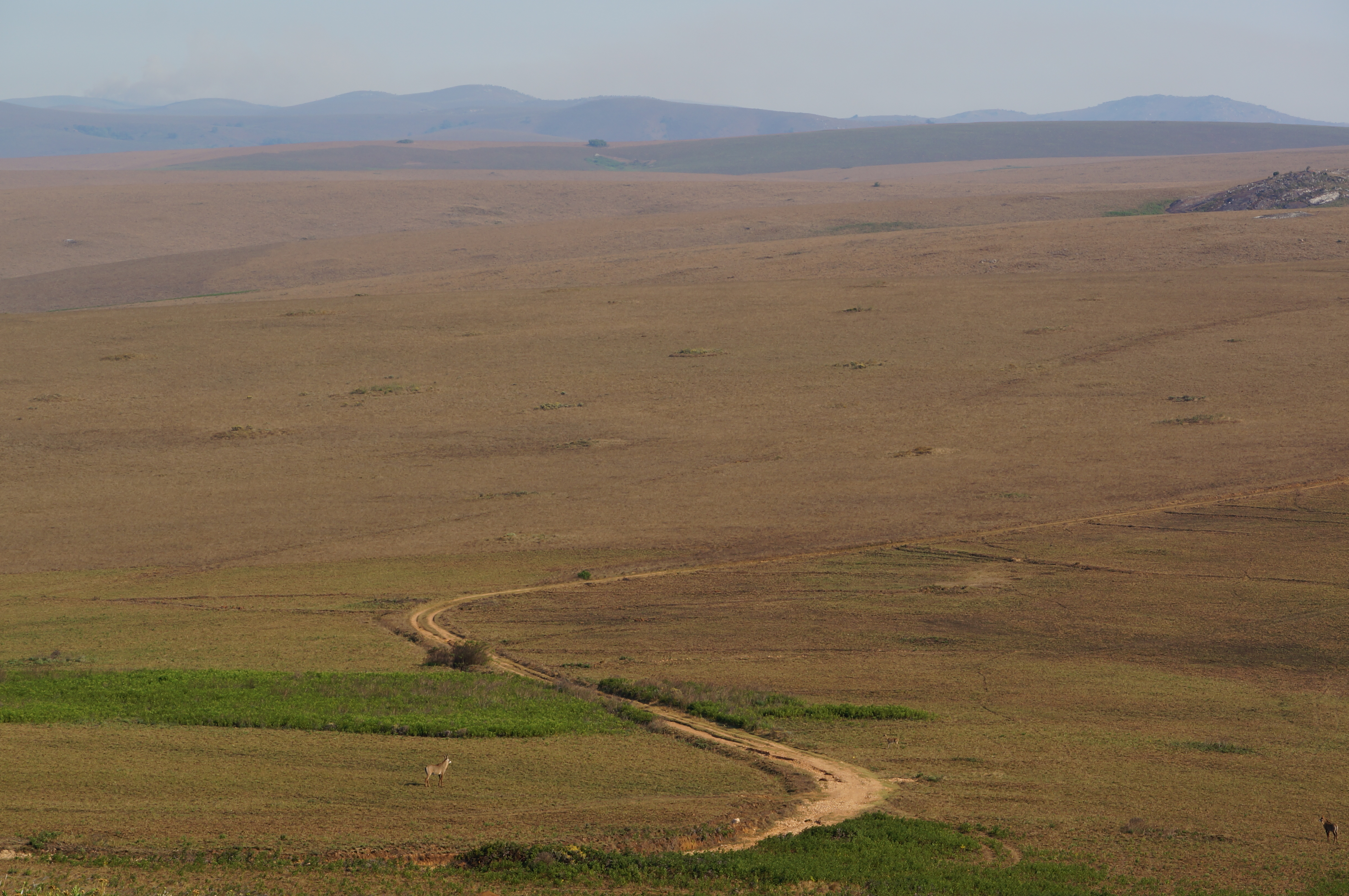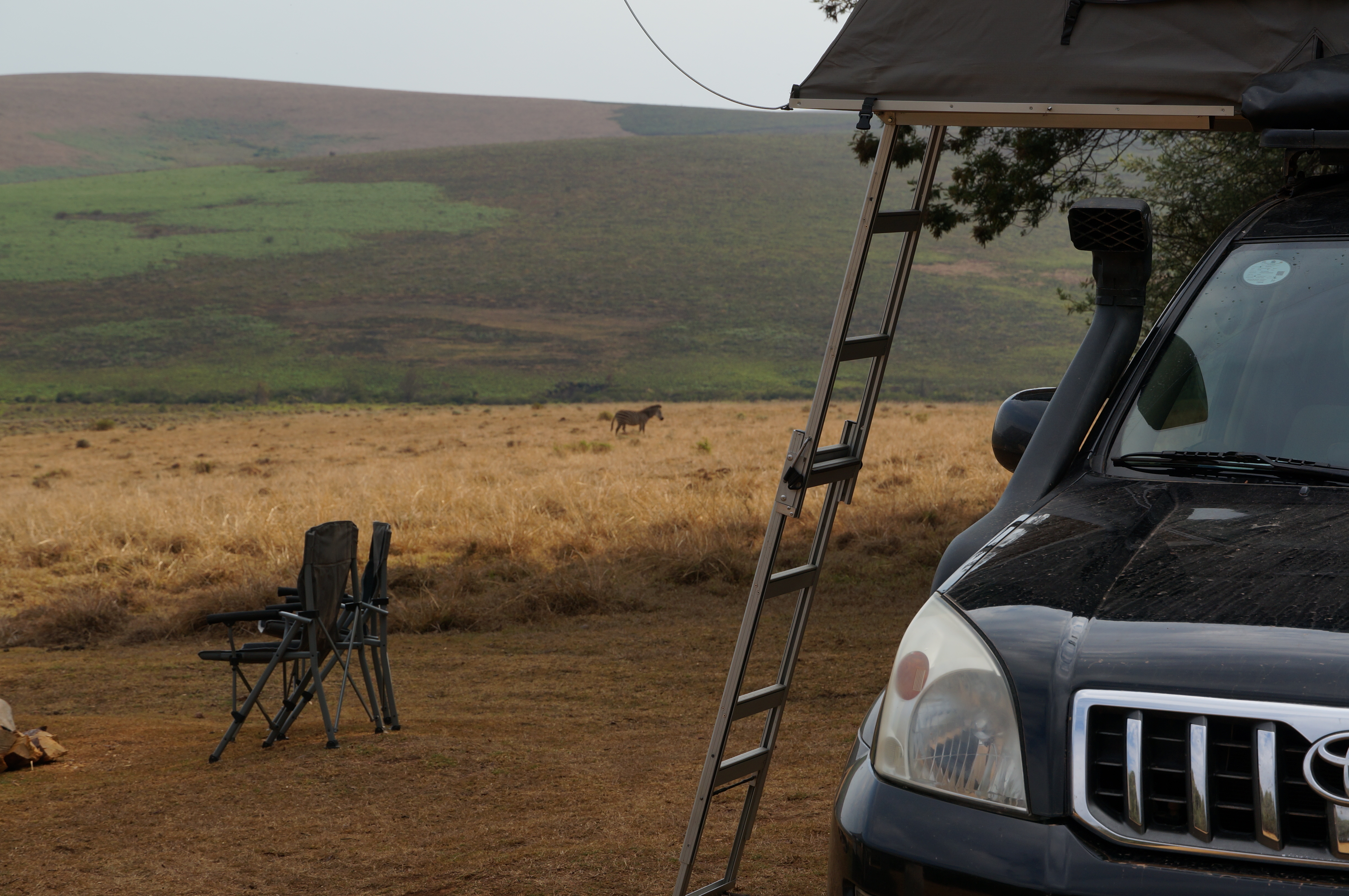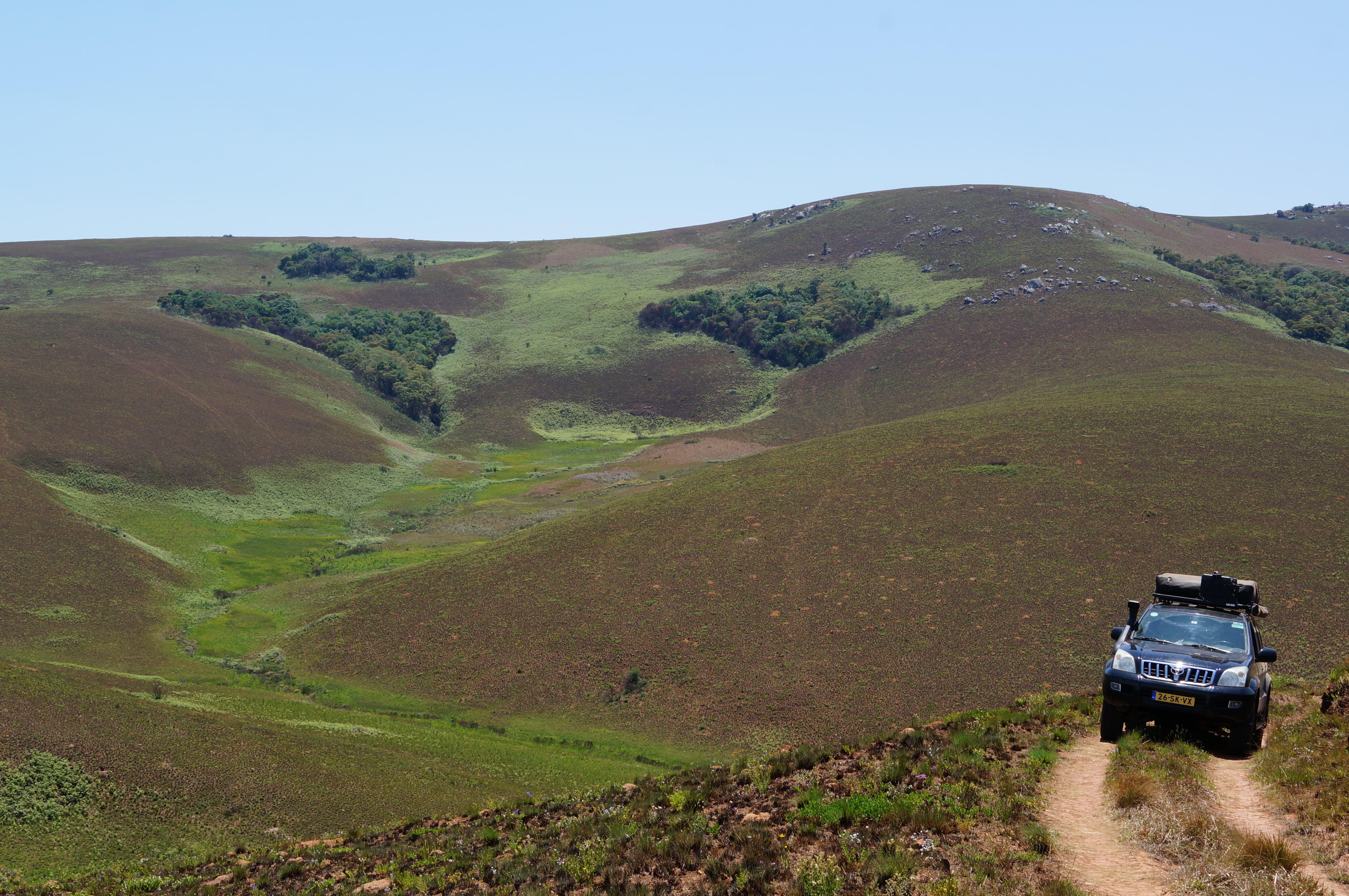 Het plateau is indrukwekkend. Zover het oog reikt zien we glooiende heuvels die gescheiden worden door groene dalen. Oneerbiedig zou je dit als Teletubbieland kunnen omschrijven, maar daarmee doe ik het landschap echt tekort. We wandelen, mountainbiken en rijden in de dagen erna over het plateau en genieten elke minuut. De camping ligt in het midden van het plateau en voor het eerst in weken is het doodstil om ons heen. Nu pas valt op hoe druk Malawi eigenlijk is. Er is altijd wel ergens geluid van mensen, maar hier horen we alleen krekels en het geknisper van het kampvuur. Als de zon ondergaat kijken we met een drankje in de hand hoe zebra’s, elanden en jakhalzen voorbij trekken. Het is alleen wij, de heuvels en de dieren.