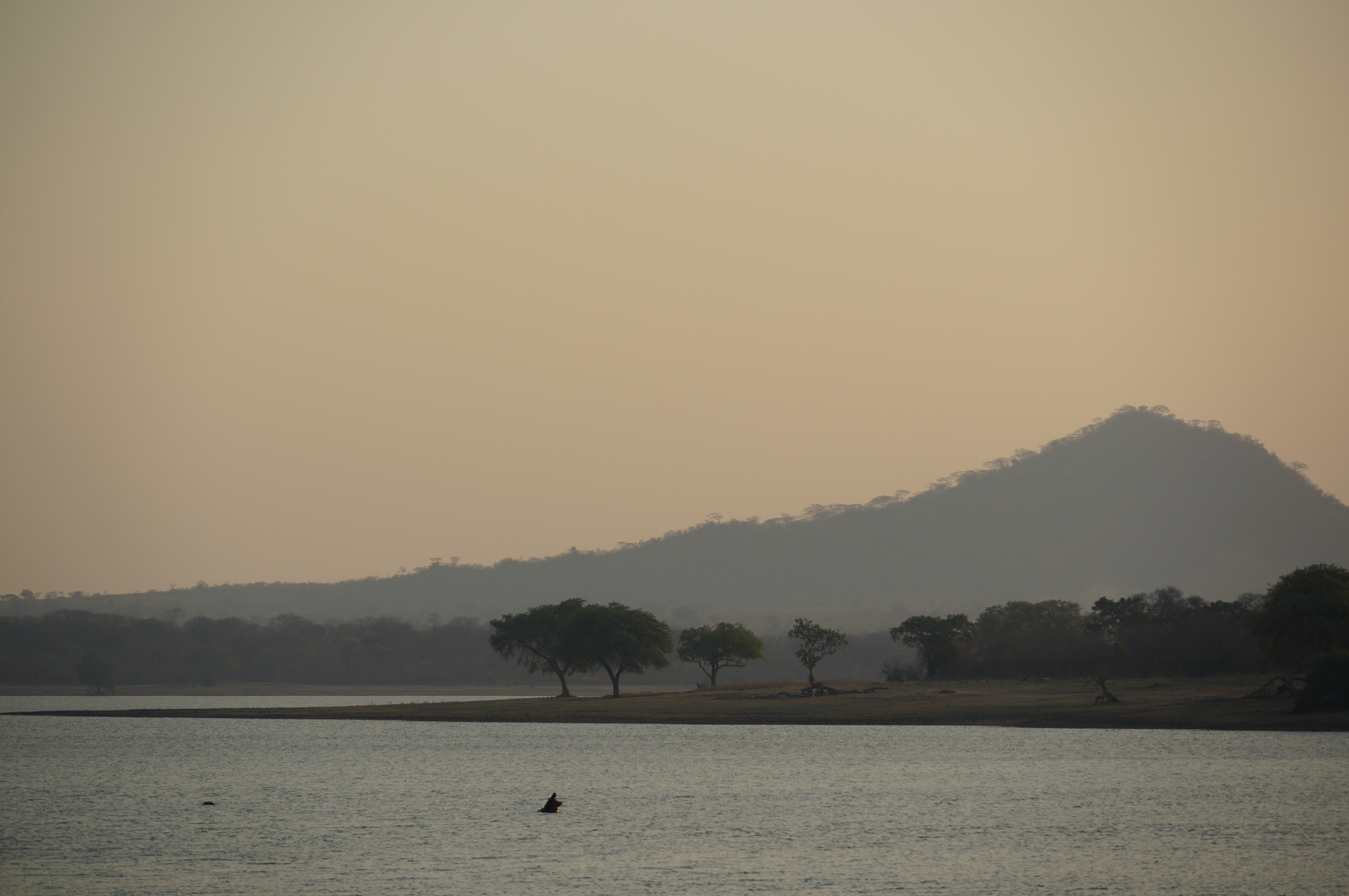Na een paar dagen stuiteren we via hetzelfde zandweggetje weer omlaag naar het Vwaza National Park. Dit is eigenlijk meer een extra stop om de route op te breken, maar wel een hele mooie. We hebben een huisje dat uitkijkt over een meer voor een decor van bergen, die door het tegenlicht van de late middagzon in een blauwe gloed worden gezet. We zien vanaf ons terrasje hoe nijlpaarden met hun enorme bek boven het wateroppervlak uitsteken en olifanten hun dorst komen lessen.