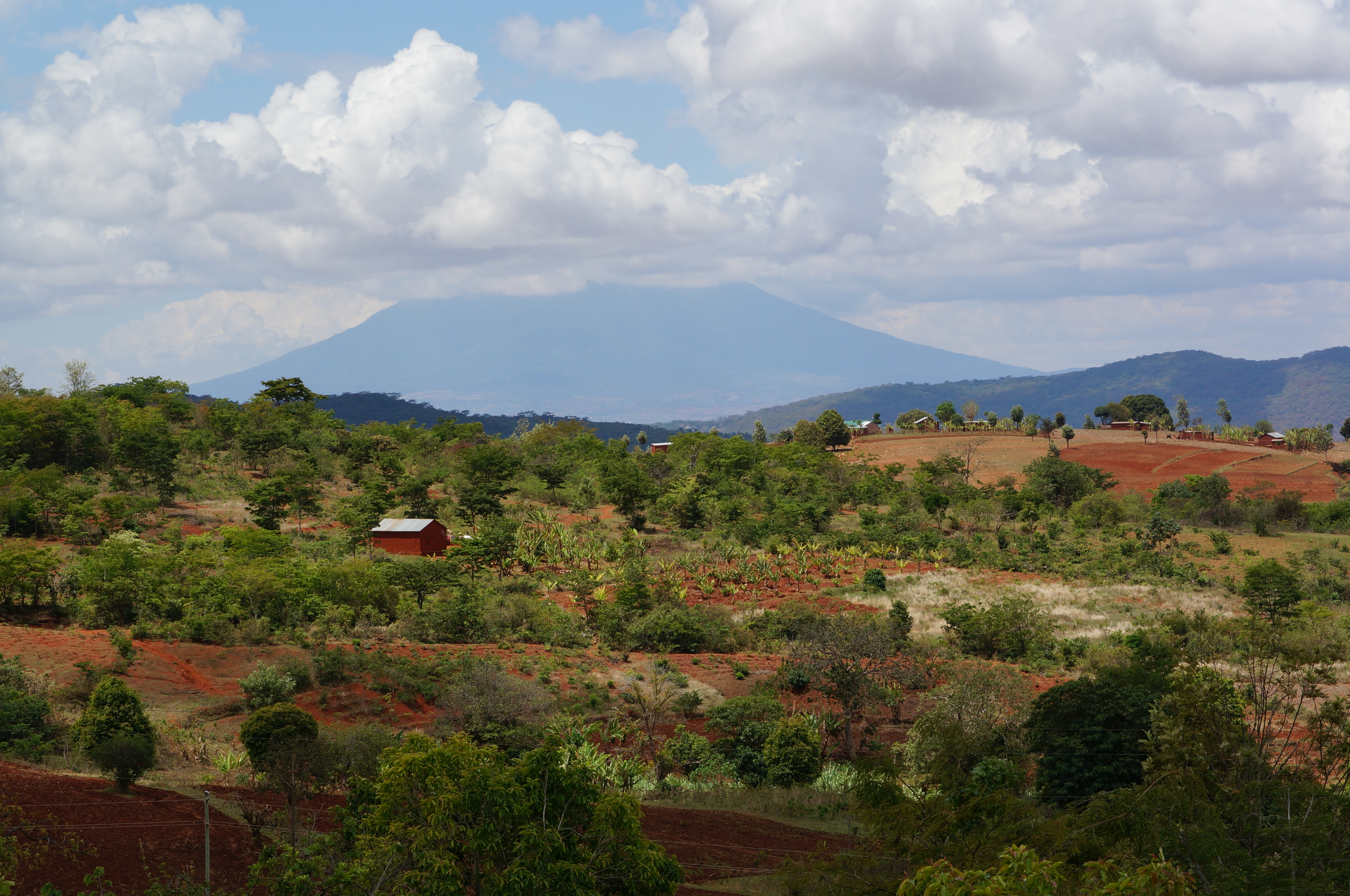 De weg naar het noorden loopt langs de riftvallei. We dalen van het groene, bergachtige landschap af naar een droge vallei met duizenden boababs. We zien vulkanen, waar wolken als een grote dot slagroom aan de top zitten geplakt. Uiteindelijk wordt het weer groener en komen we voor het eerst deze reis op een plek waar we al eens eerder zijn geweest, het dorpje Mto Wa Mbu. Acht jaar geleden waren hier nog geen pinautomaten en geasfalteerde voetpaden.