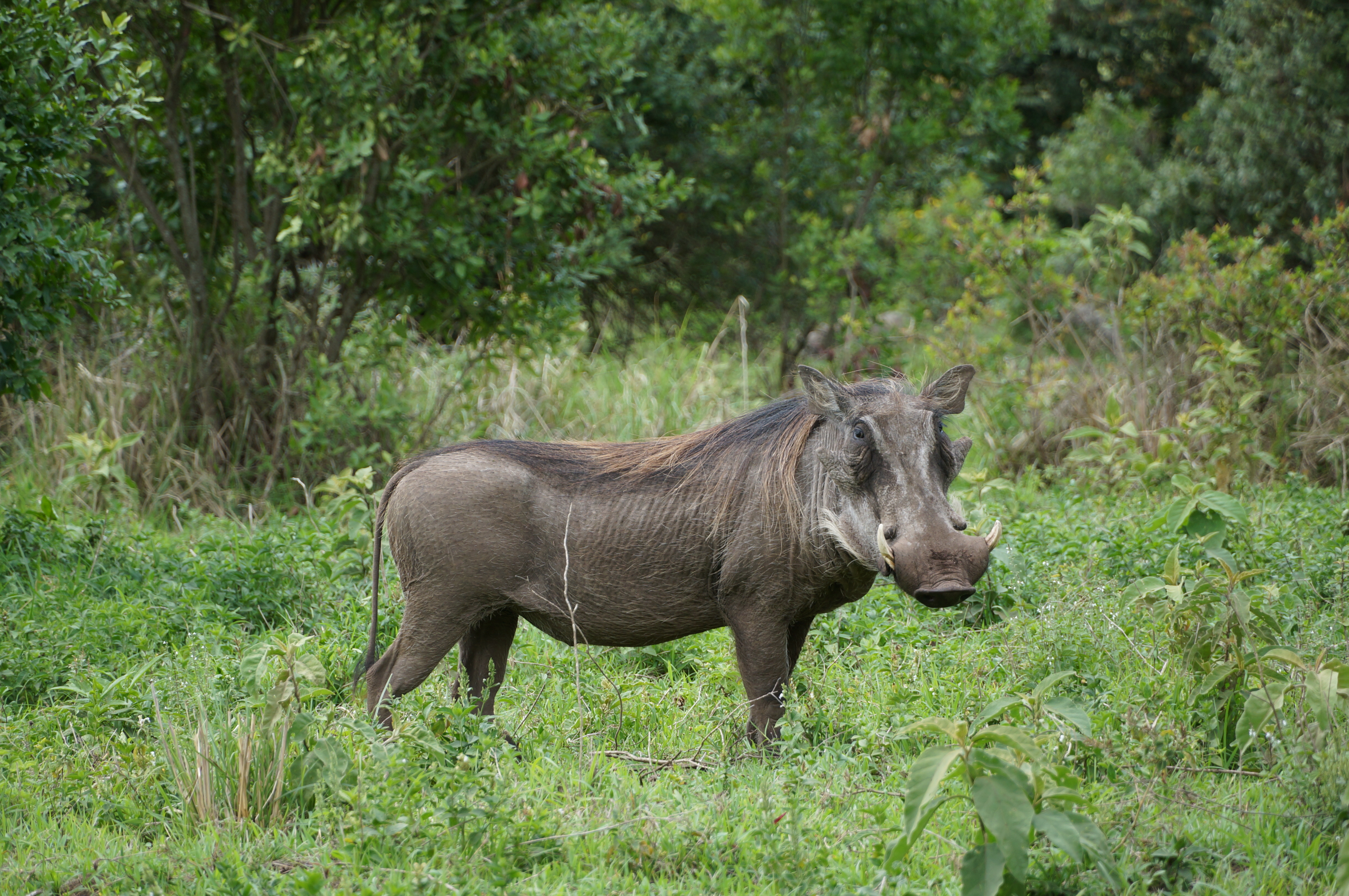 Wandeling naar de Napuru-waterval | Ngurdoto-krater | Overgroeid weggetje | Mount Meru | Buffels op de kraterbodem | Wrattenzwijntje | Tunneltje door wilde vijgenbomen | Giraffe in Arusha National Park