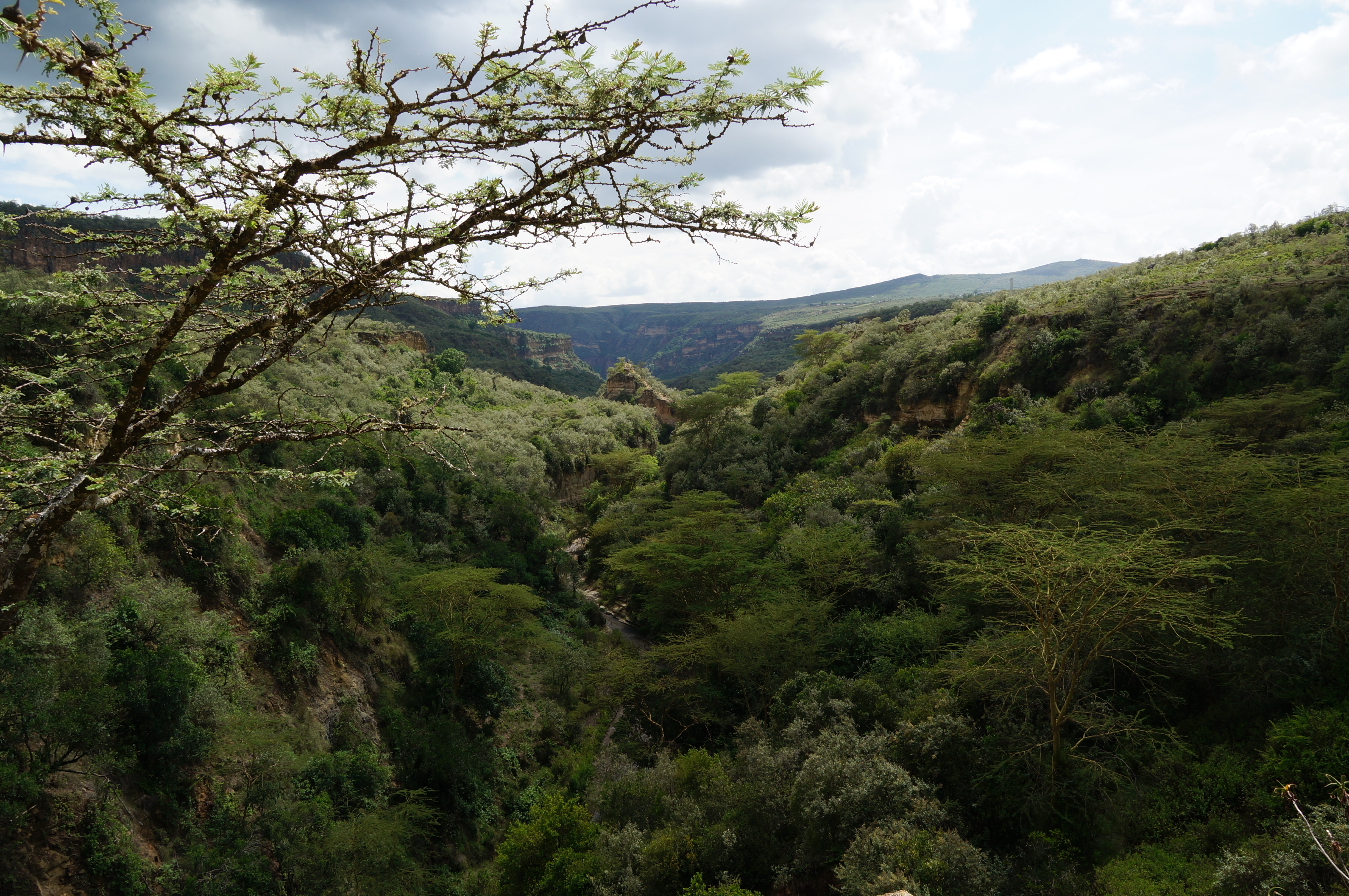 Het ongeregelde zootje van Arusha staat in schril contrast met de schilderachtige omgeving, die wordt gedomineerd door Mount Meru. We maken een mooie wandeling naar de Napuru-waterval en dalen door dichtbegroeide bossen af naar een kloof, waar wilde vijgen, enorme mahoniebomen, magnolia’s en varens groeien. Tussen de met mos begroeide rotsen lopen we naar de waterval, die van tientallen meters hoog in een soort enorme natuurlijke afwasteil klettert.