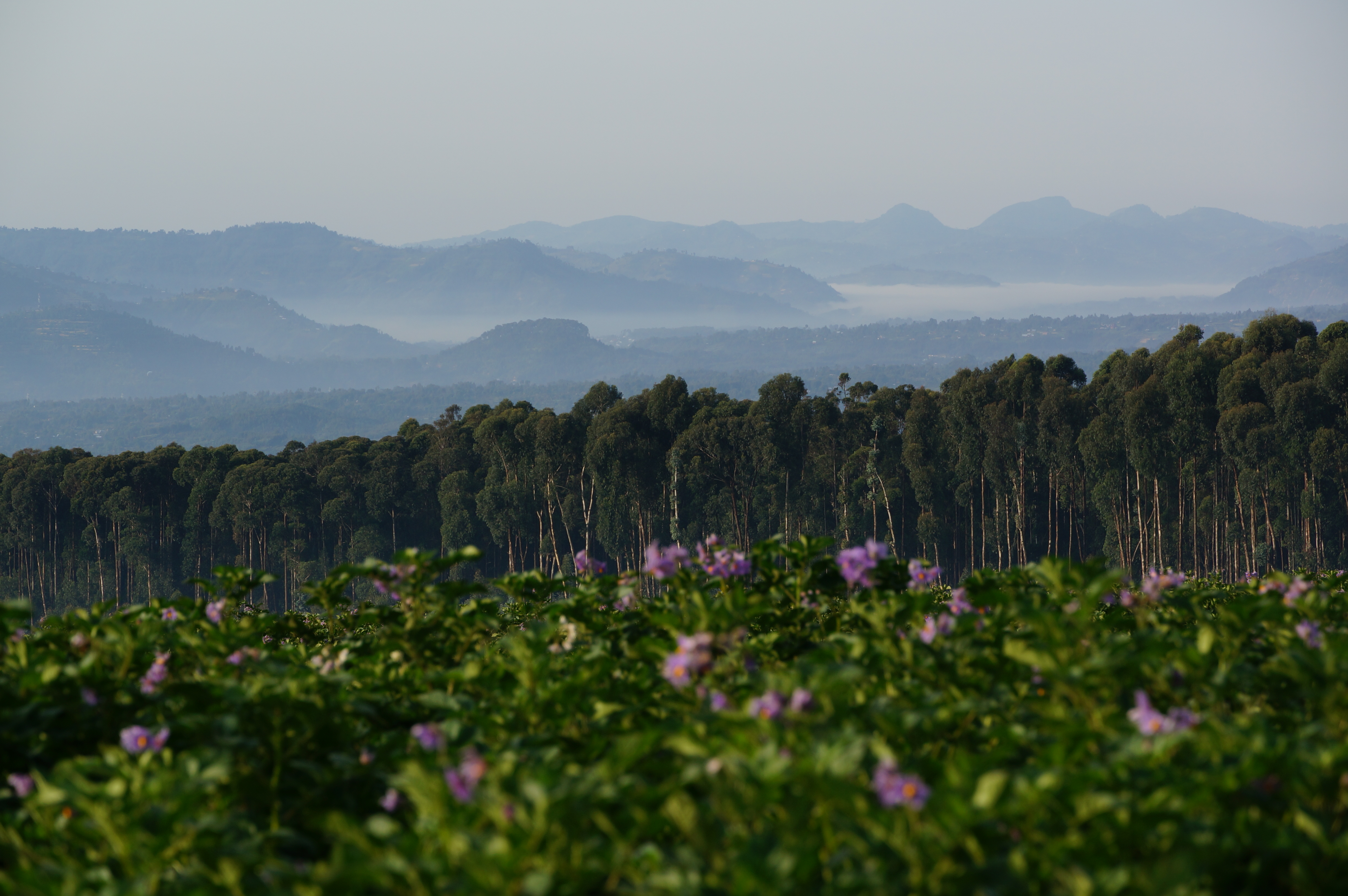 De zwarte geschiedenis van Rwanda vond plaats in een schilderachtige omgeving. Alsof al het mooie van het land uitgewist moest worden met geweld. Maar de schoonheid van Rwanda is niet verloren gegaan. Dit wordt het land van duizend heuvels genoemd, maar in werkelijkheid moeten het er tienduizenden zijn. Geen weg is recht en overal waar we rijden is het mooi. Glooiende, groene heuvels worden afgewisseld met uitgestrekte valleien met rijstvelden. En dan zijn er nog de prachtige meren, zoals Lake Ruhundo en Burera, die als twee longhelften naast elkaar in het heuvellandschap liggen.