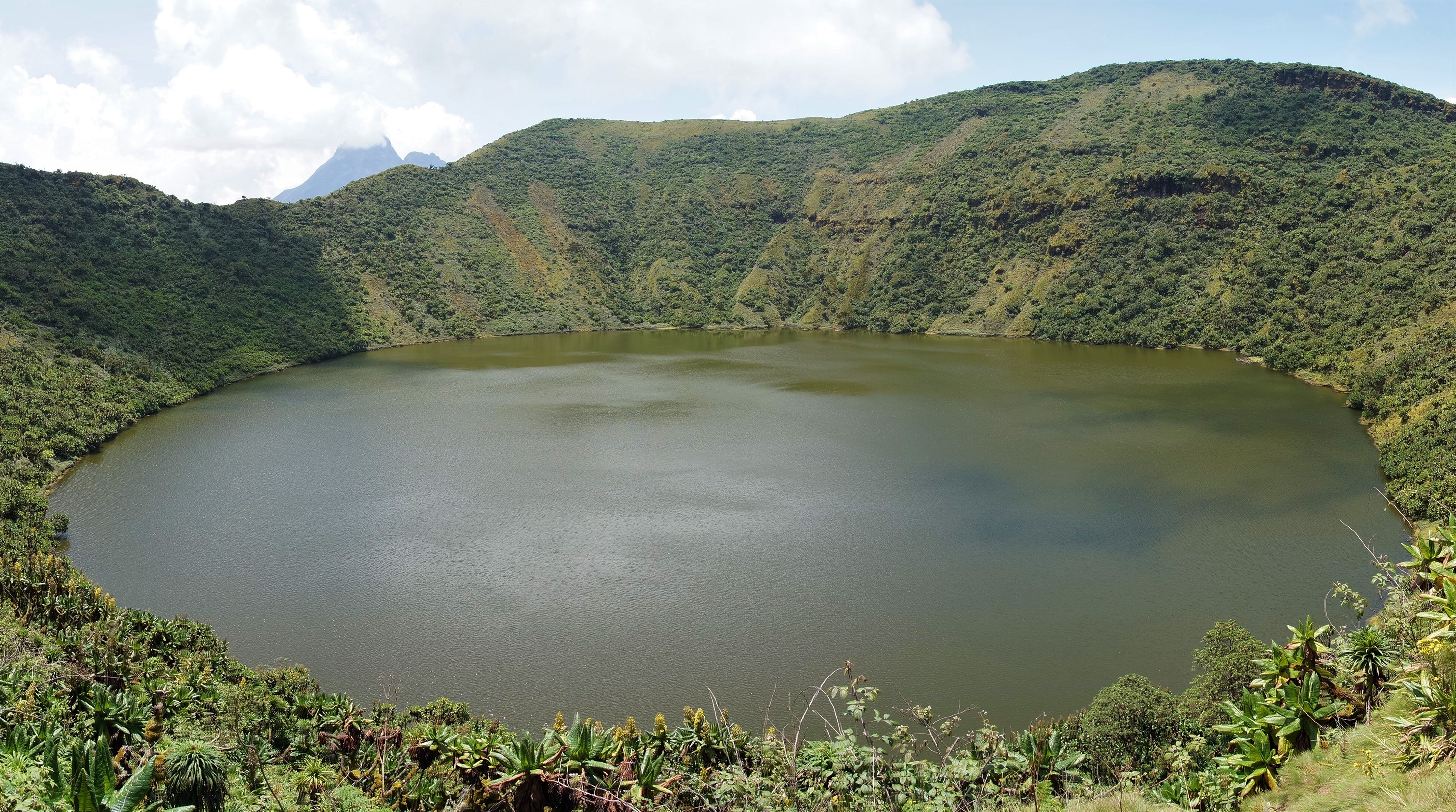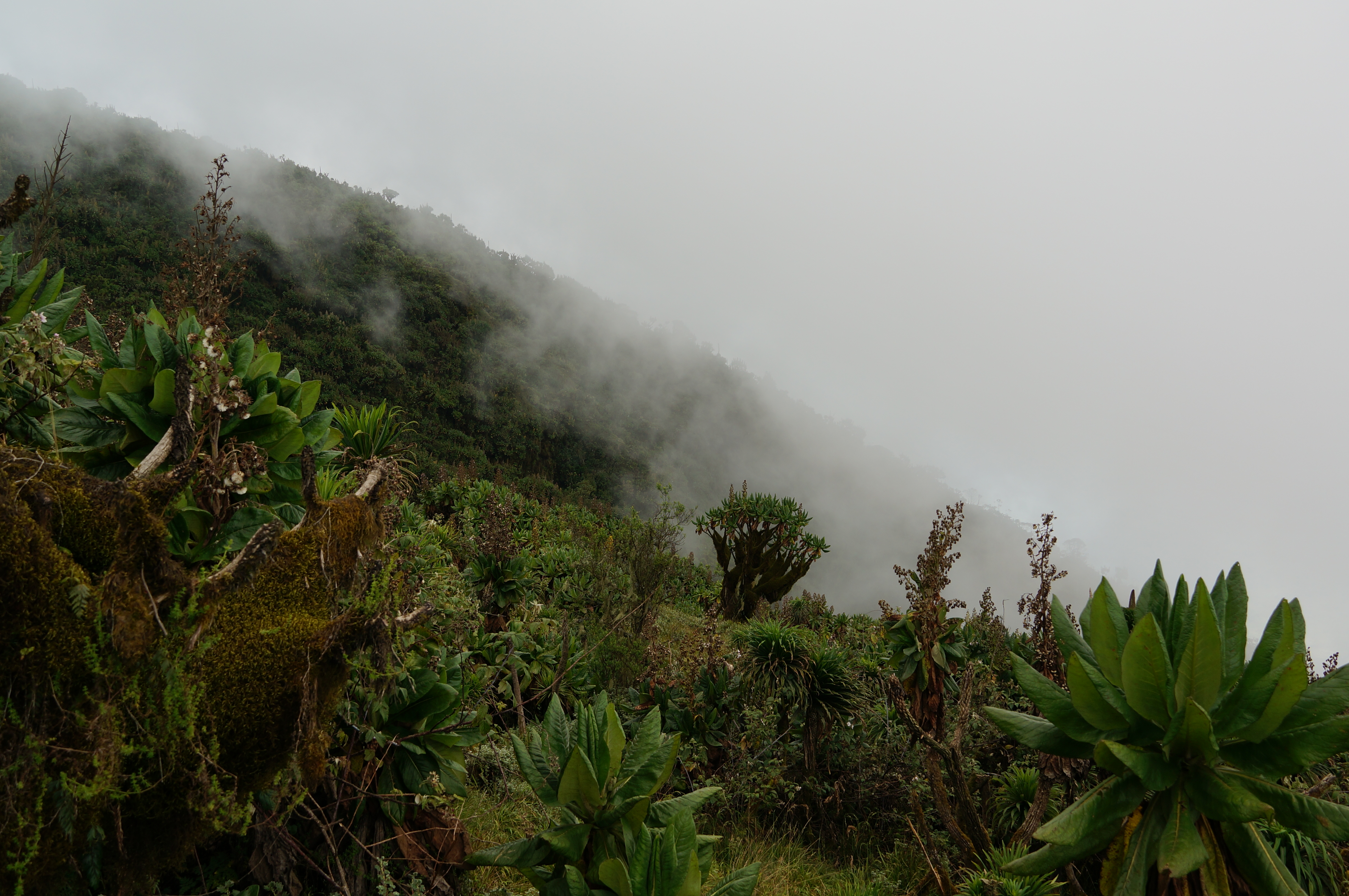 Omringd door vulkanen | Modderige weggetjes | Bijzondere vegetatie op 3.000 meter hoogte | Uitzichten vanaf Bisoke-vulkaan | Dansende wolken | Het kratermeer