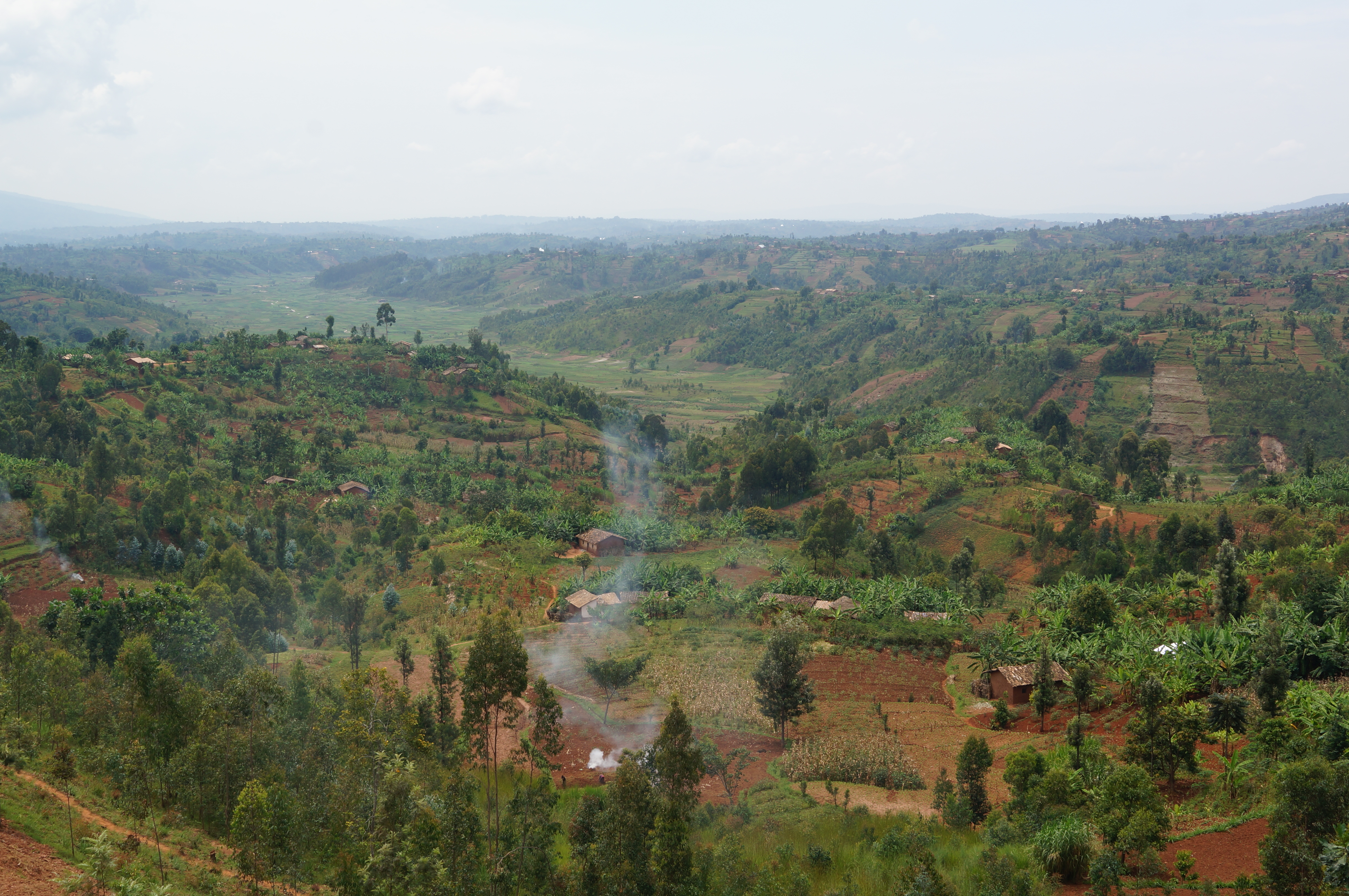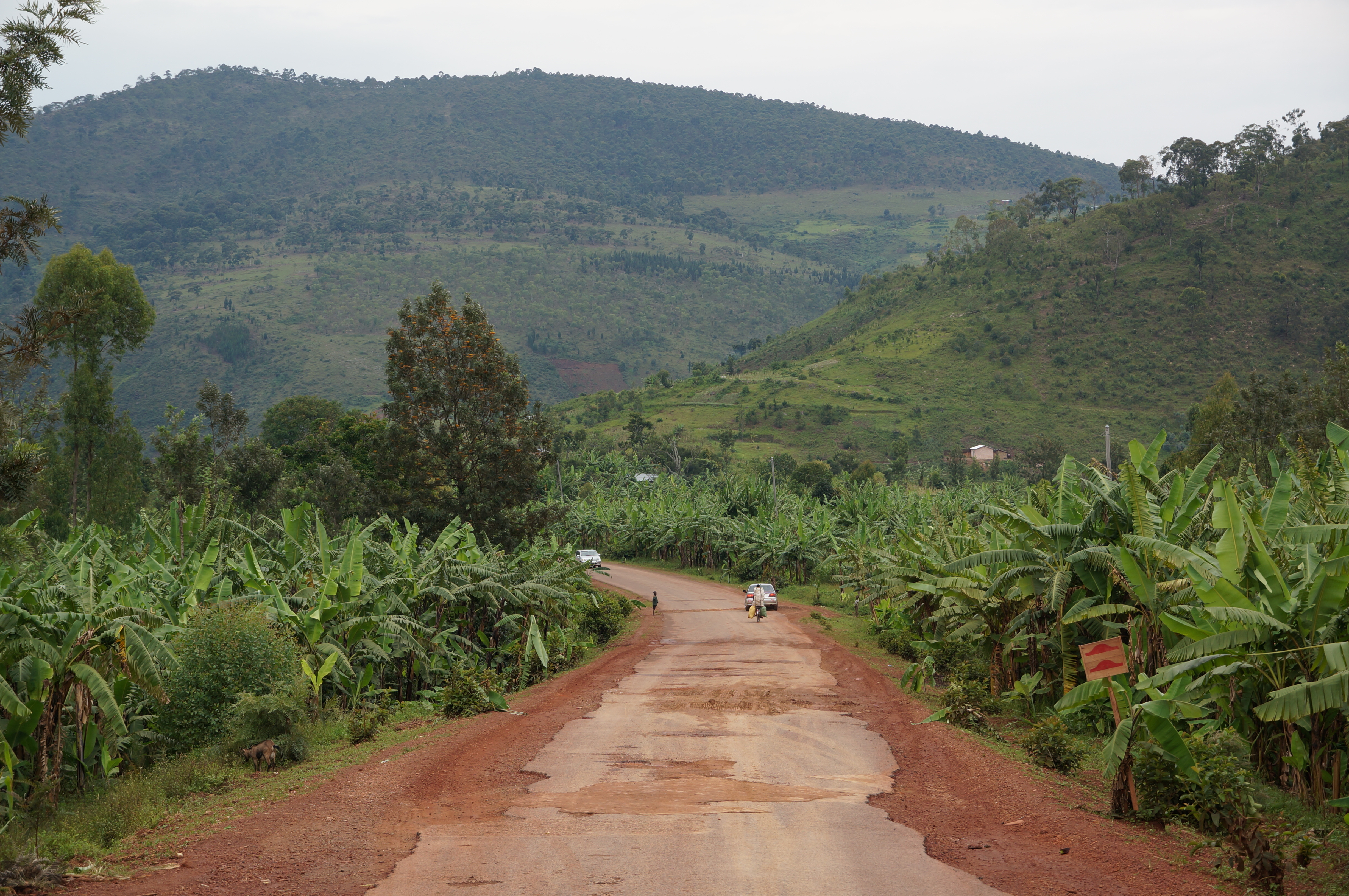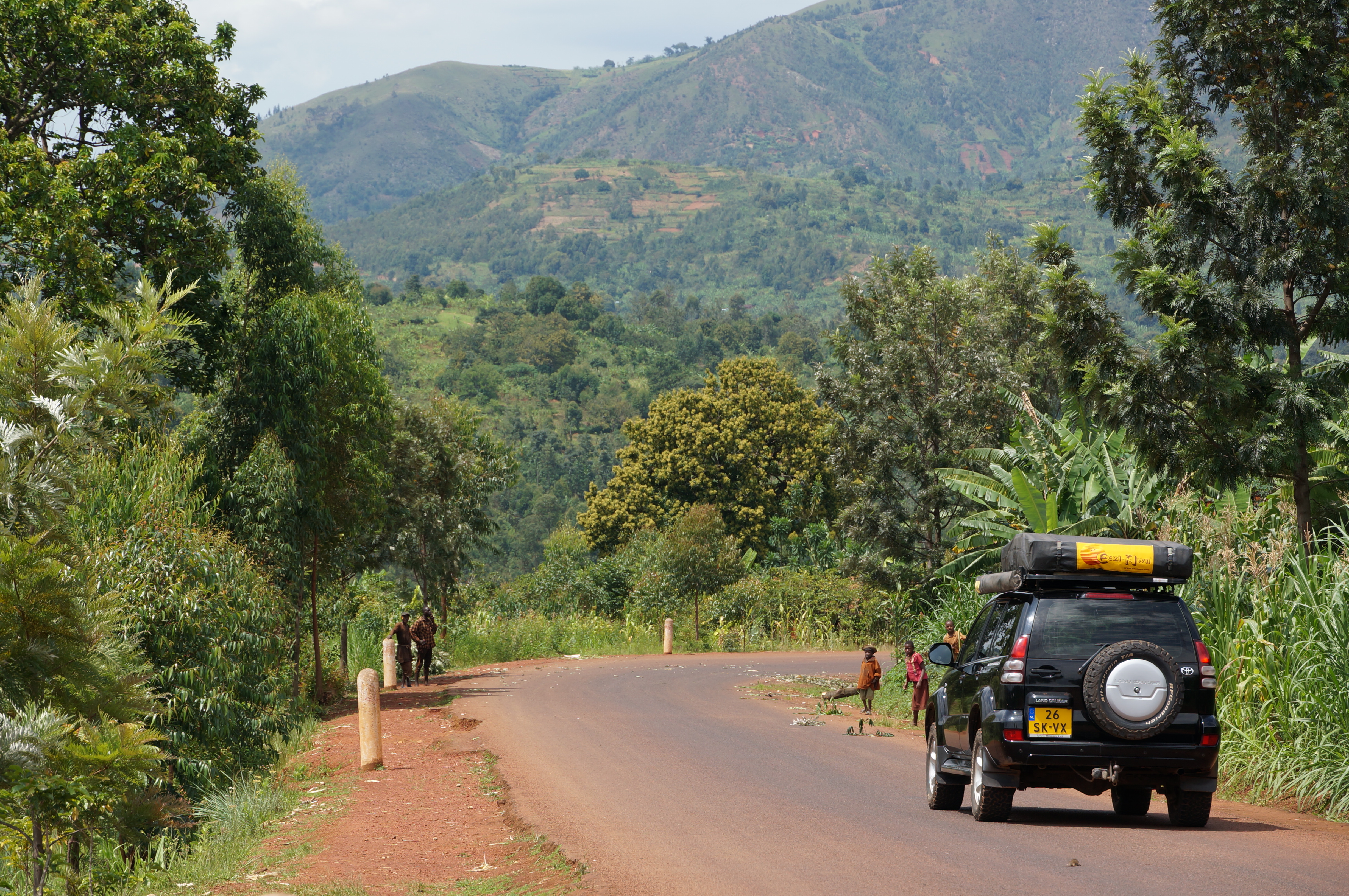 We trekken droge kleren aan en rijden nog een halfuurtje verder het binnenland van Burundi in, naar een uitzichtpunt. Het uitzicht is prachtig, maar daarna moeten we weer een uur terug rijden omdat het doorsteekje richting de hoofdweg is weggespoeld door de regen. Ook de weg terug is inmiddels getransformeerd tot een langgerekt modderbad maar uiteindelijk komen we weer op de asfaltweg. Of beter gezegd: asfalt weg, want de meeste wegen in dit deel van Burundi zijn meer kuil dan asfalt. Hele stukken zijn weggeslagen en kapotgereden en op andere plekken zijn er kuilen zo diep dat een autowiel er volledig in kan verdwijnen. Gelukkig is omgeving mooi, Burundi is echt een prachtig land.