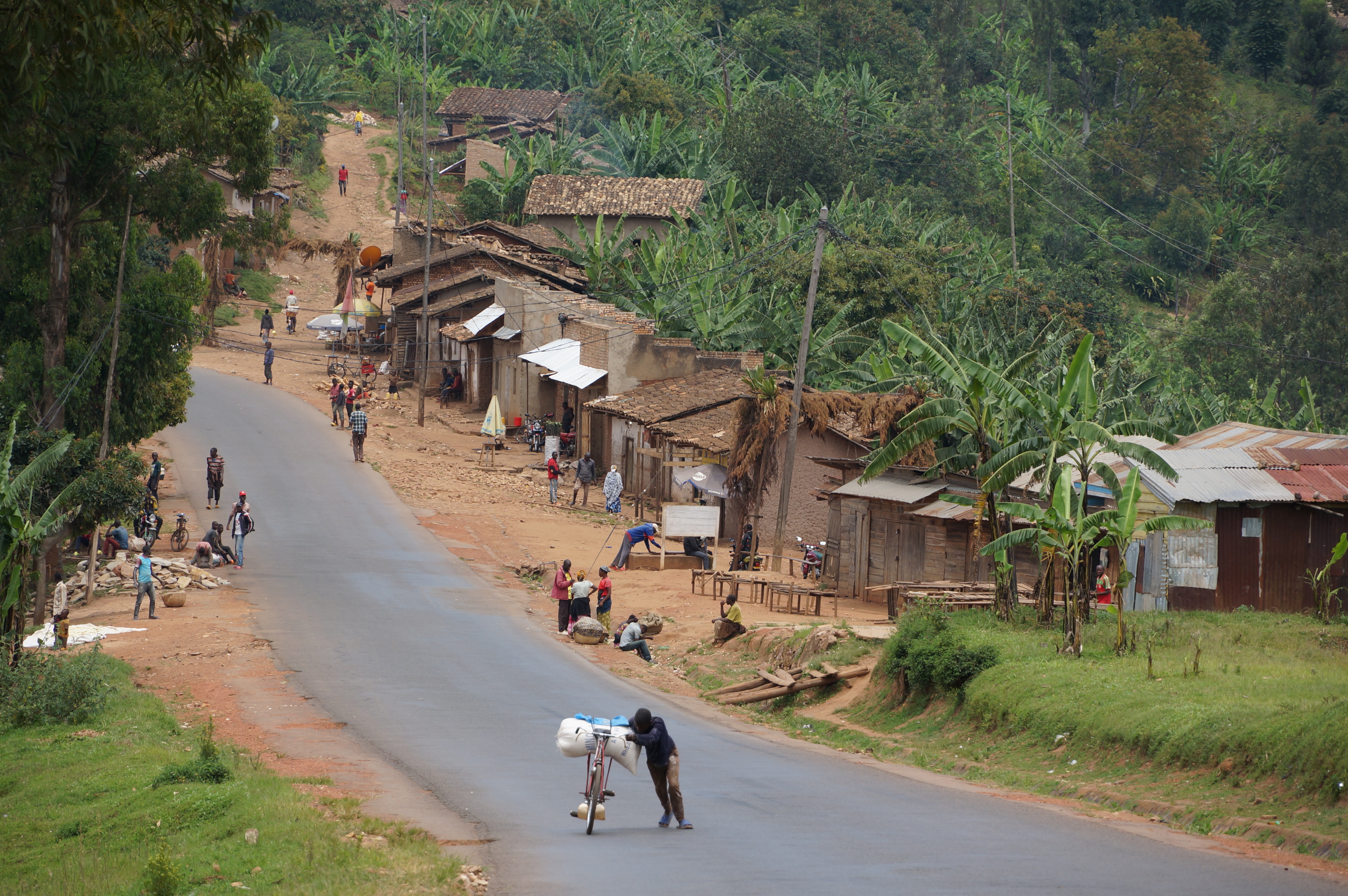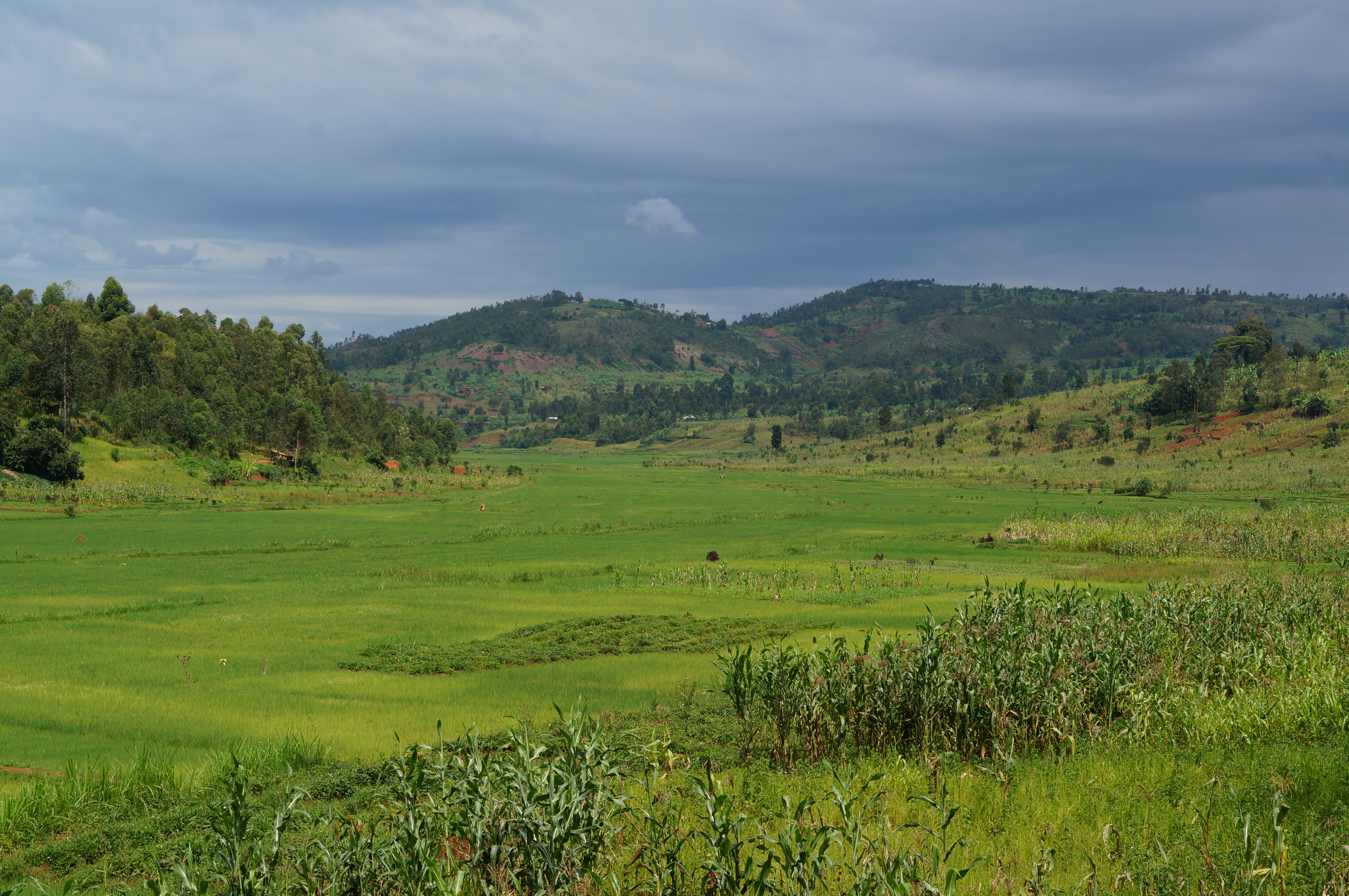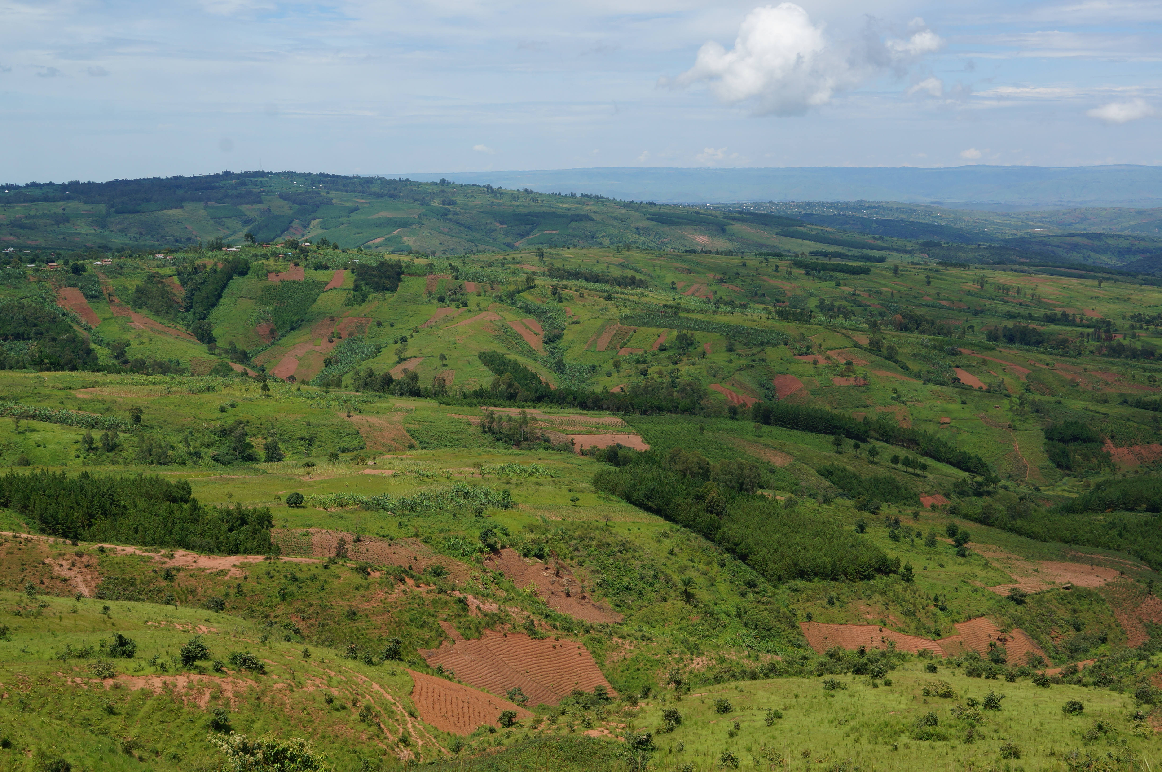 We trekken droge kleren aan en rijden nog een halfuurtje verder het binnenland van Burundi in, naar een uitzichtpunt. Het uitzicht is prachtig, maar daarna moeten we weer een uur terug rijden omdat het doorsteekje richting de hoofdweg is weggespoeld door de regen. Ook de weg terug is inmiddels getransformeerd tot een langgerekt modderbad maar uiteindelijk komen we weer op de asfaltweg. Of beter gezegd: asfalt weg, want de meeste wegen in dit deel van Burundi zijn meer kuil dan asfalt. Hele stukken zijn weggeslagen en kapotgereden en op andere plekken zijn er kuilen zo diep dat een autowiel er volledig in kan verdwijnen. Gelukkig is omgeving mooi, Burundi is echt een prachtig land.