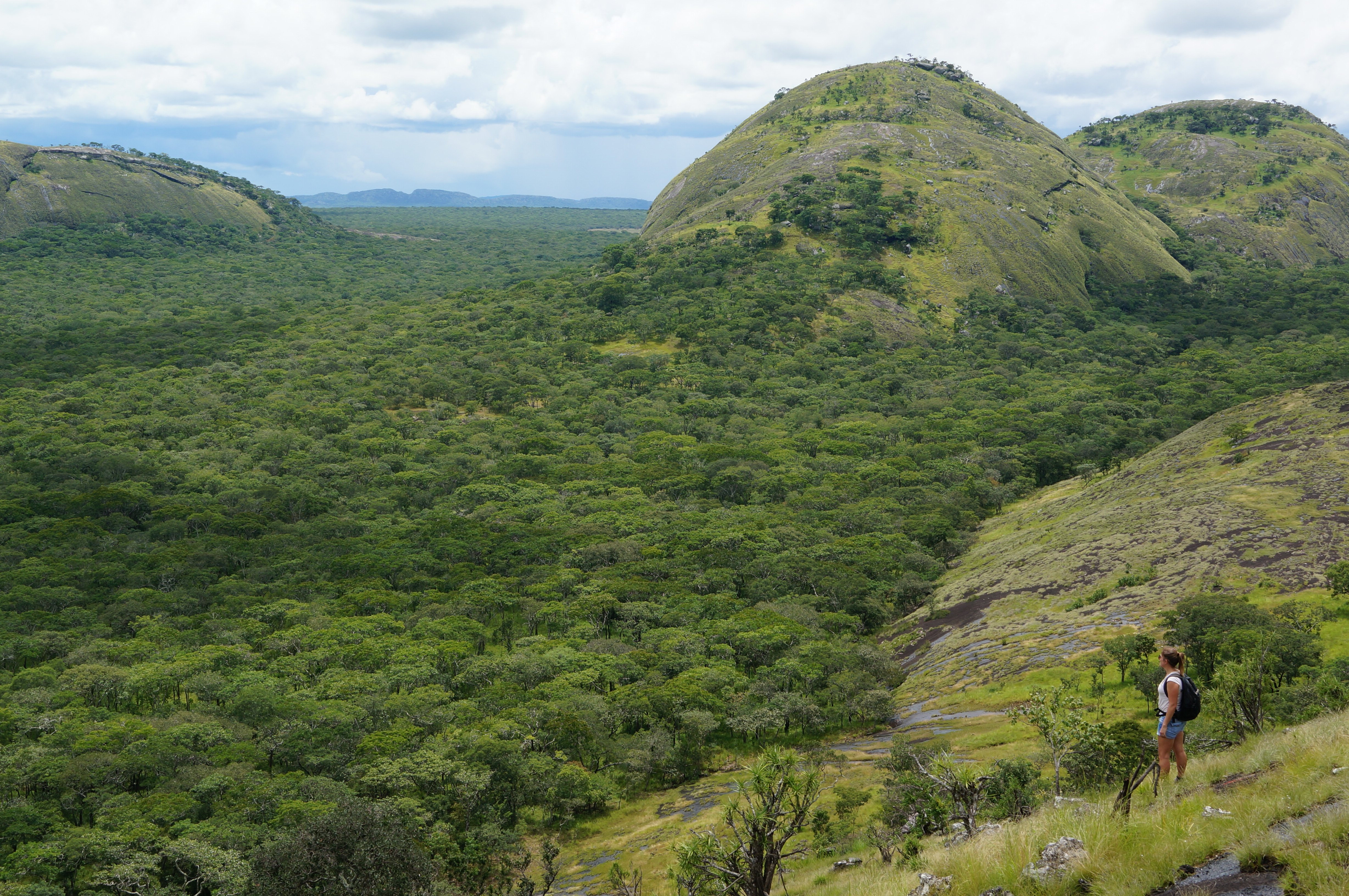 Het mooiste stukje van Zambia is misschien wel de Mutinondo Wilderness, waar we midden in de natuur kamperen en eindelijk weer eens kunnen wandelen zónder gids. Het is een prachtig gebied, met grote grijze rotsen die als walvissen uit een groene zee oprijzen in het landschap. We beklimmen twee van die bulten zodat we een prachtig 360-graden-uitzicht over de omgeving hebben. Zover we kunnen kijken zien we groene wildernis.